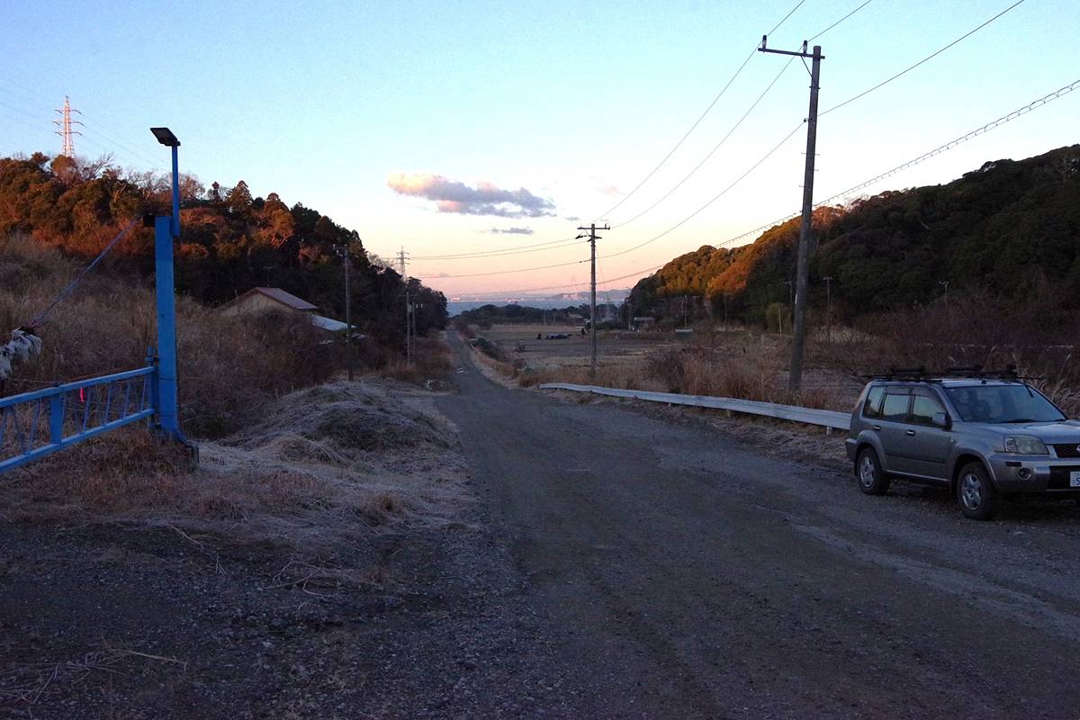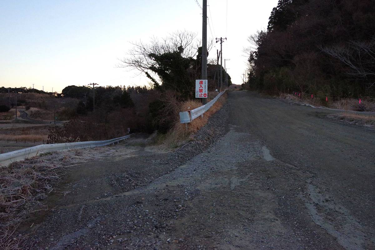 千葉県道256号新舞子海岸線から、この写真の砂利道を約600m東へ向かった地点である。