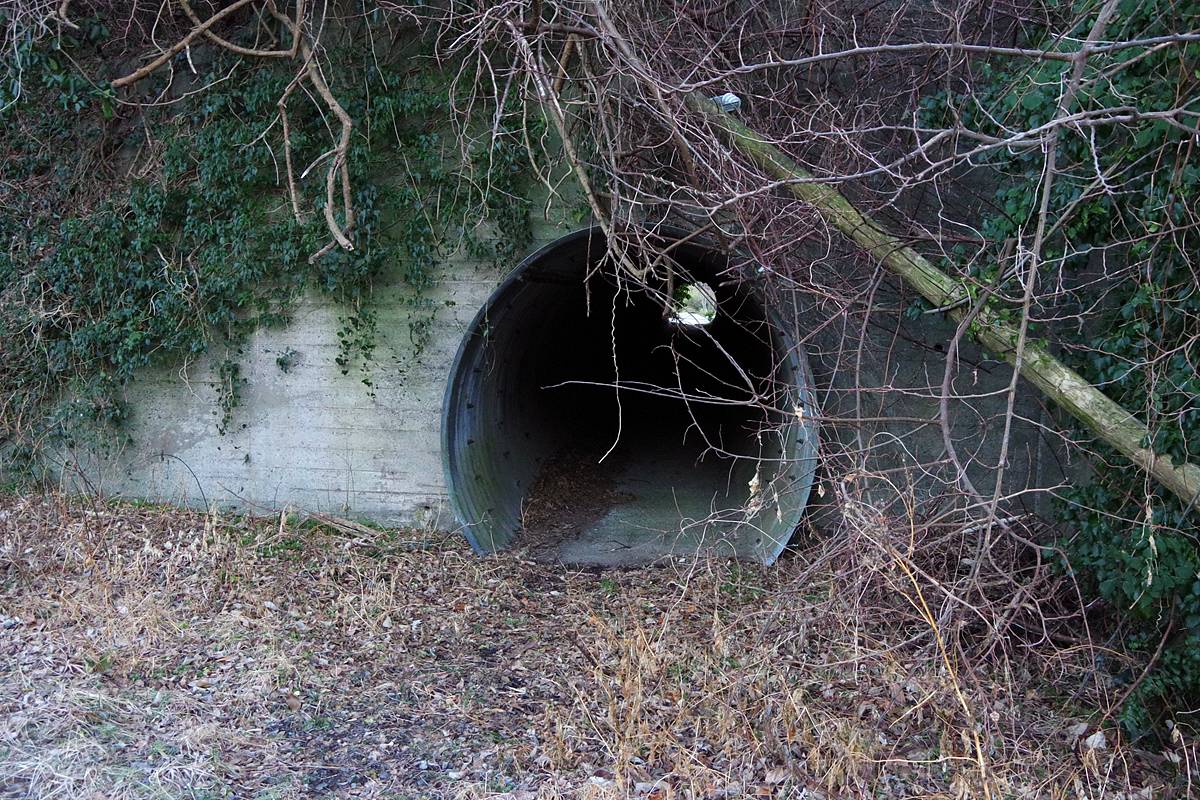 コルゲートパイプの使い方や路面のセメント鋪装の様子などよく似ているが、おそらく断面(というかパイプの径)は今回のほうがより狭いであろう。