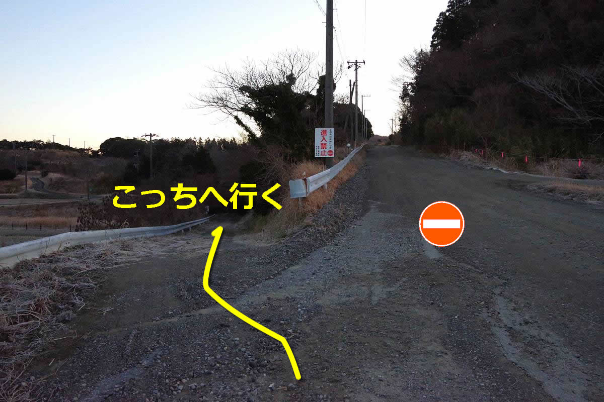 私はこの“直線道路”を、西側の県道から走ってきた。