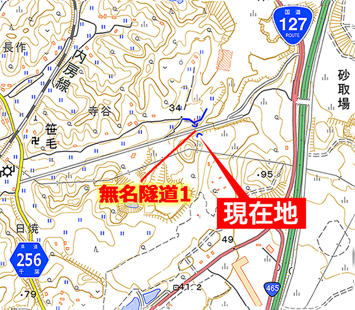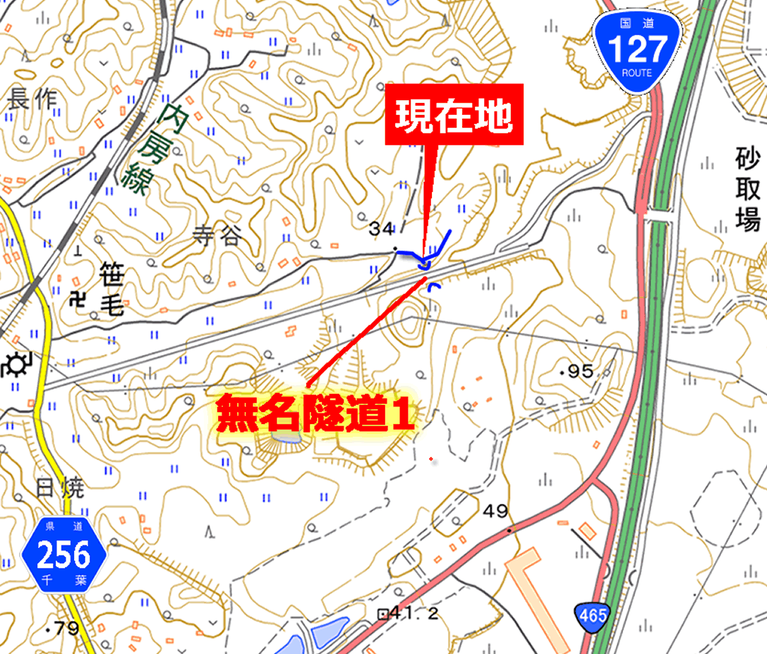 ↑この「無名隧道1」というトンネルがあるのは、千葉県富津市の笹毛という場所だ。