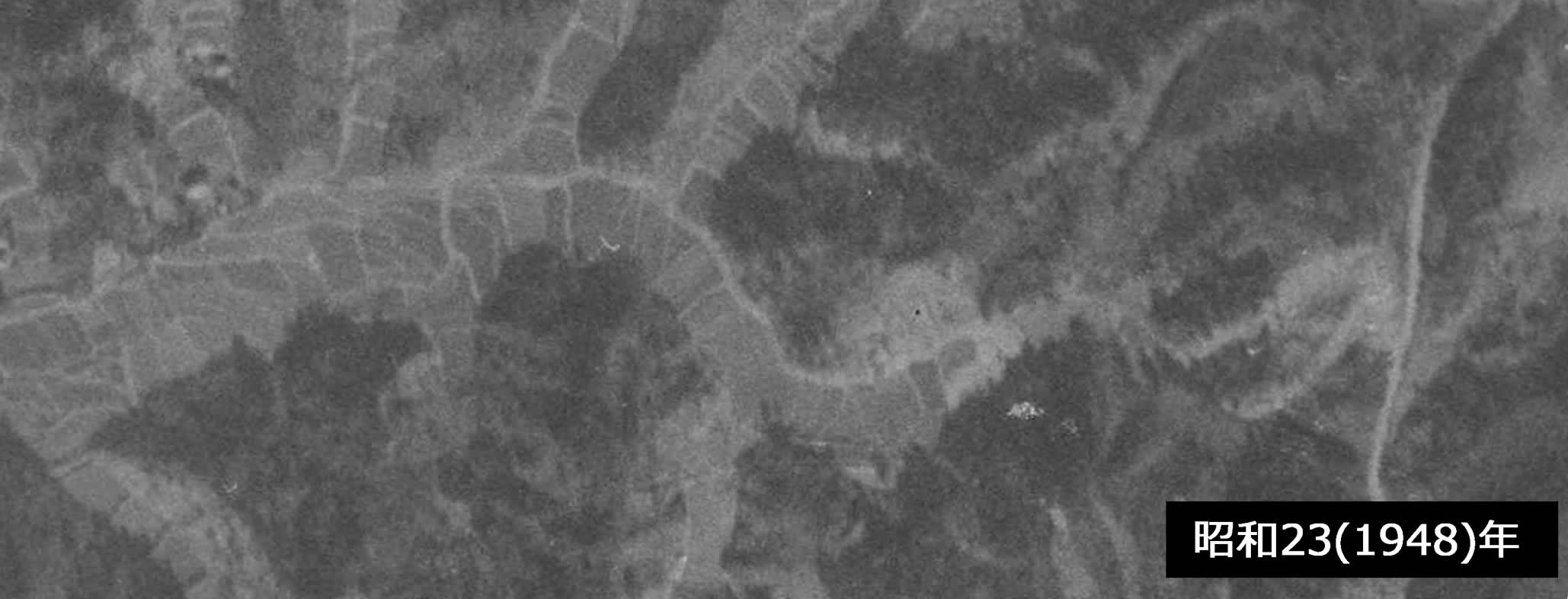 今度はより隧道の周辺に焦点を当てて、先ほどとは逆に古い順に航空写真を見較べてみよう。