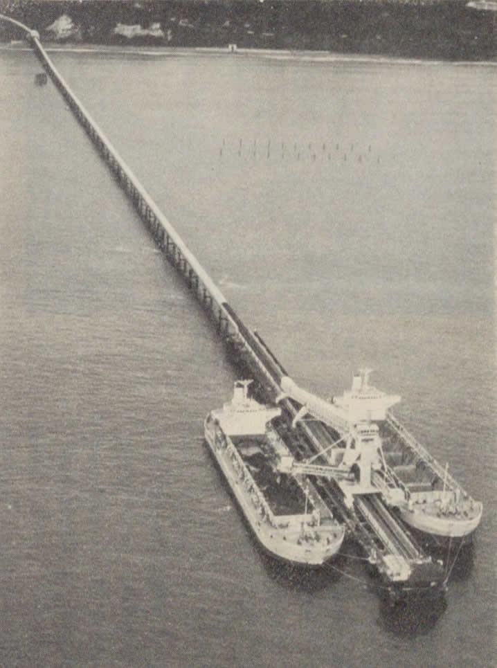 ベルトコンベヤーの先端は両系統とも海上に1km以上伸びていて、先端に船積み設備があった。そこでは同時に2隻の作業船(土砂運搬と海中投下を行う)であるバージが横付けされ、プッシャーと呼ばれる動力船と合体し連日東京湾内を往復し続けた。