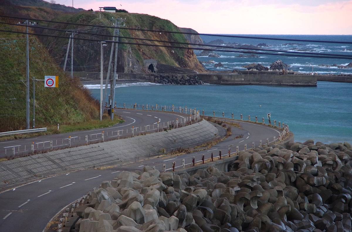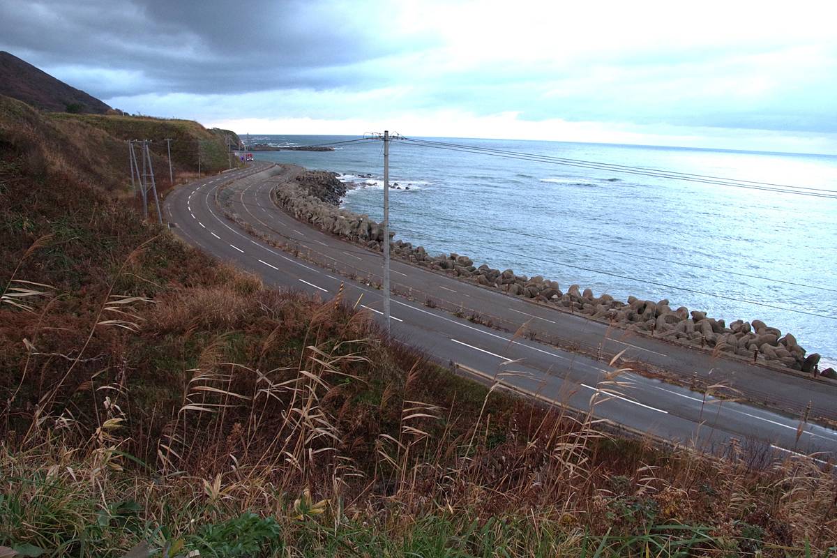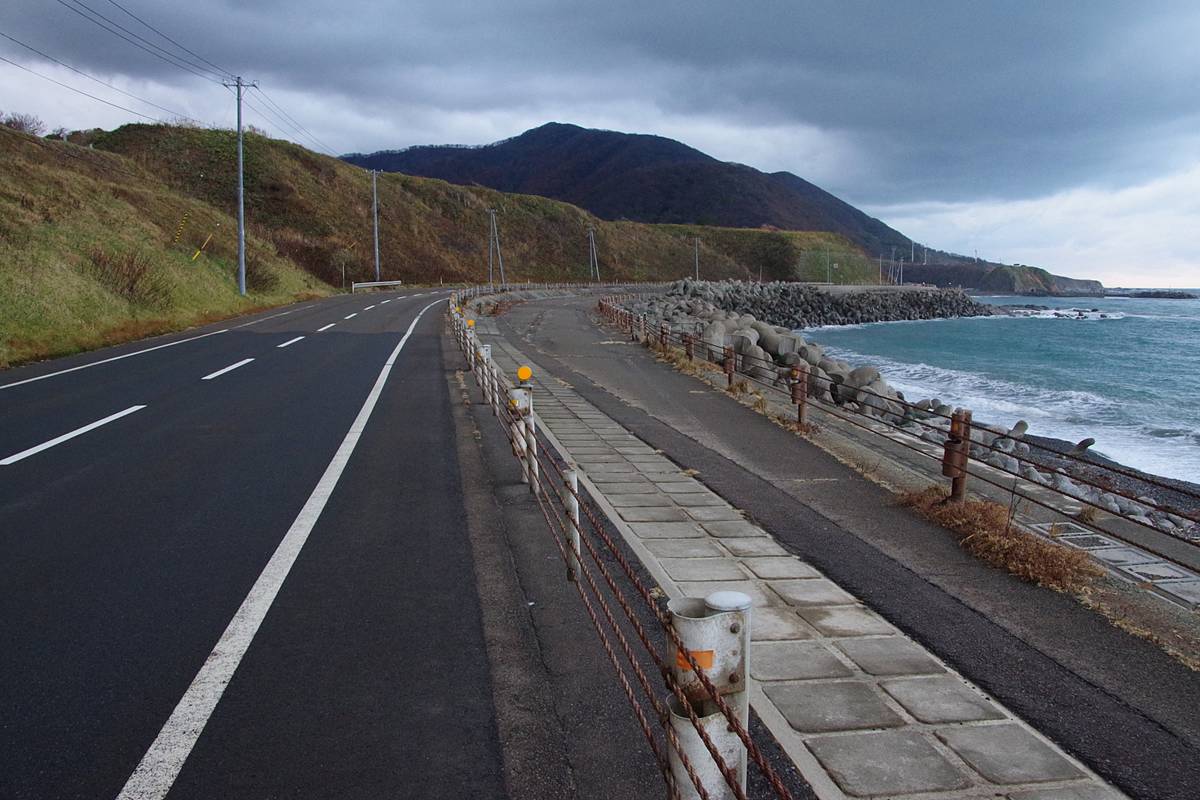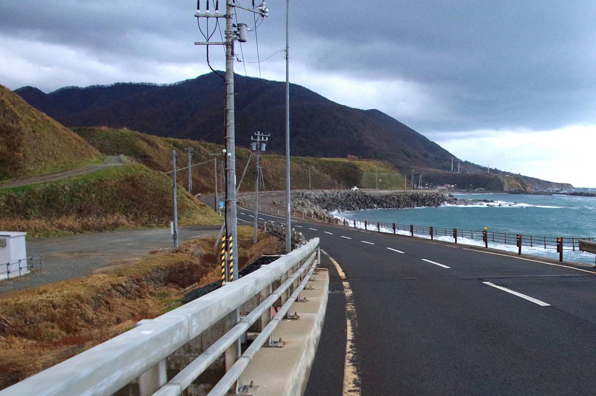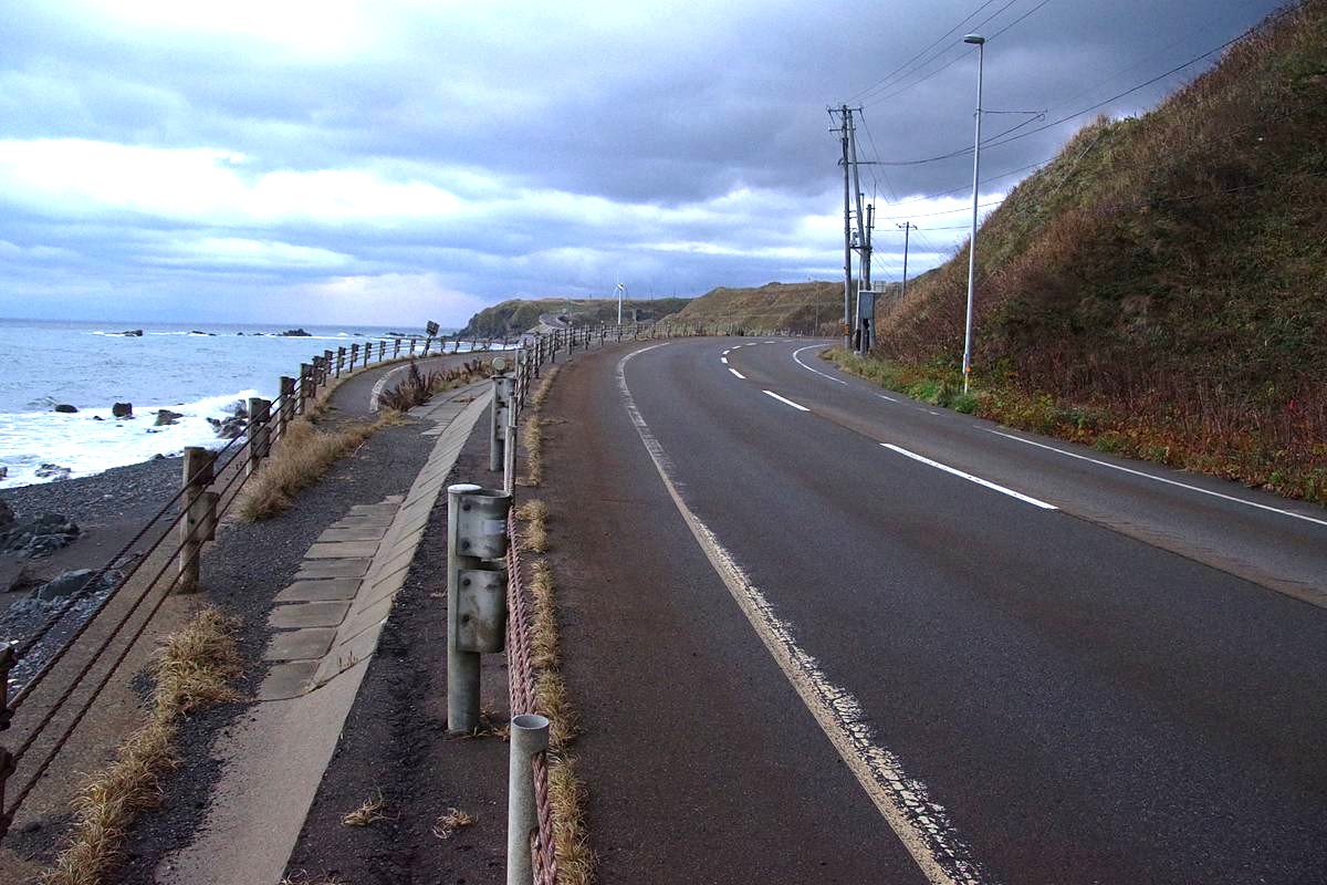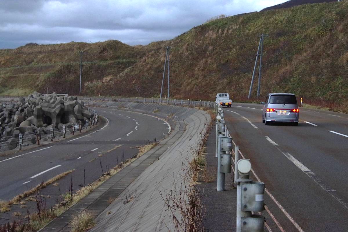 なお、平成5(1993)年に発生して道南一帯に大きな津波被害をもたらした北海道南西沖地震の影響も考えたが、被害調査資料によると、当区間の道路に直接の被害はなかった模様であり、また地震後の地盤の沈降も大きくはなかったようだから、震災の復旧事業ではなかったと思う(巨大津波に耐えられるほどの嵩上げもされていない)。