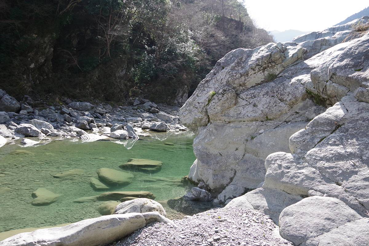 四国の観光地としては有数の知名度を誇り、国の重要有形民俗文化財にも指定されている“祖谷のかずら橋”が架かっているのがこの川だが、今回の探索地はそれよりはずっと下流で、吉野川との合流地点の近くである。