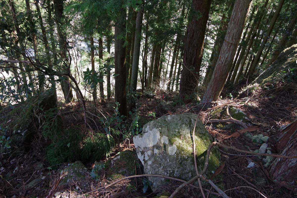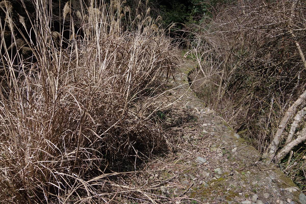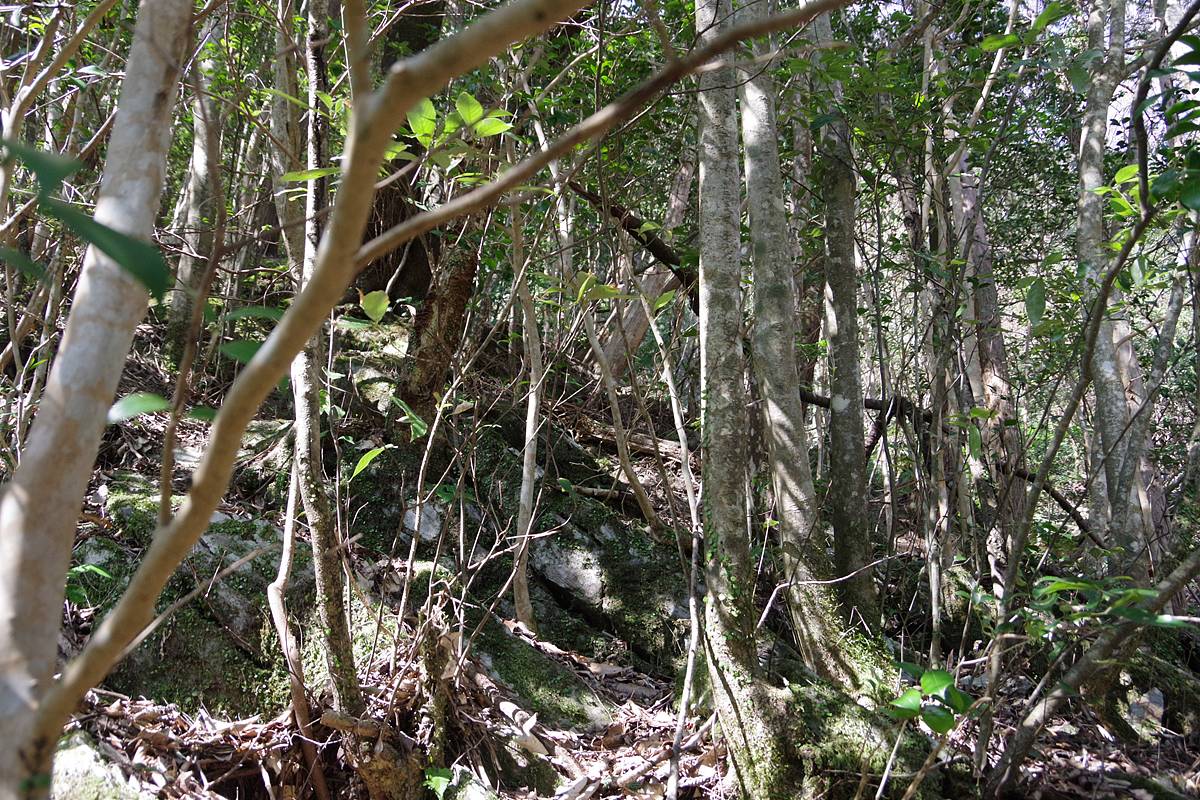 周囲は陽当たりのよい灌木帯で、茶葉らしき低木の照葉樹が大量のススキやワラビなどの枯れ草に悶えながら疎らに生えていた。ここは茶畑の跡かもしれない。