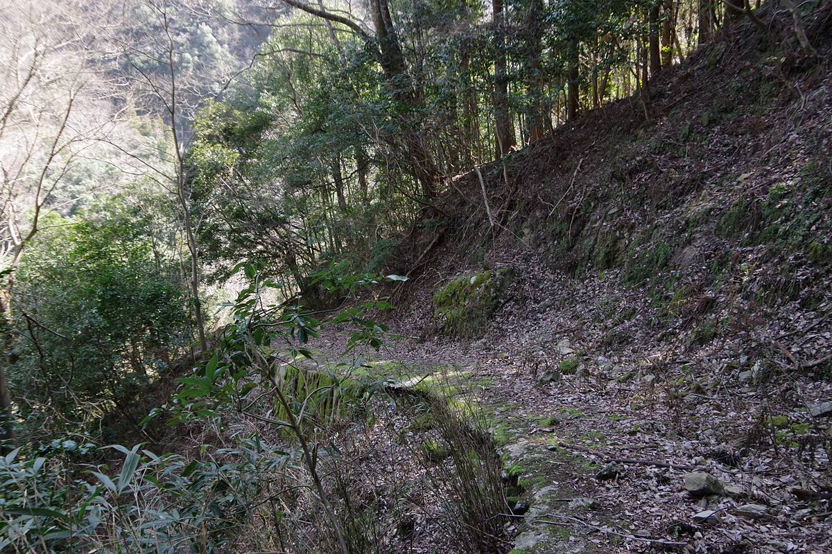軌道が描かれていた旧地形図にも「小径(=徒歩道)」として存在している道で、おそらく左岸の集落を結ぶ古い生活道路だと思う。