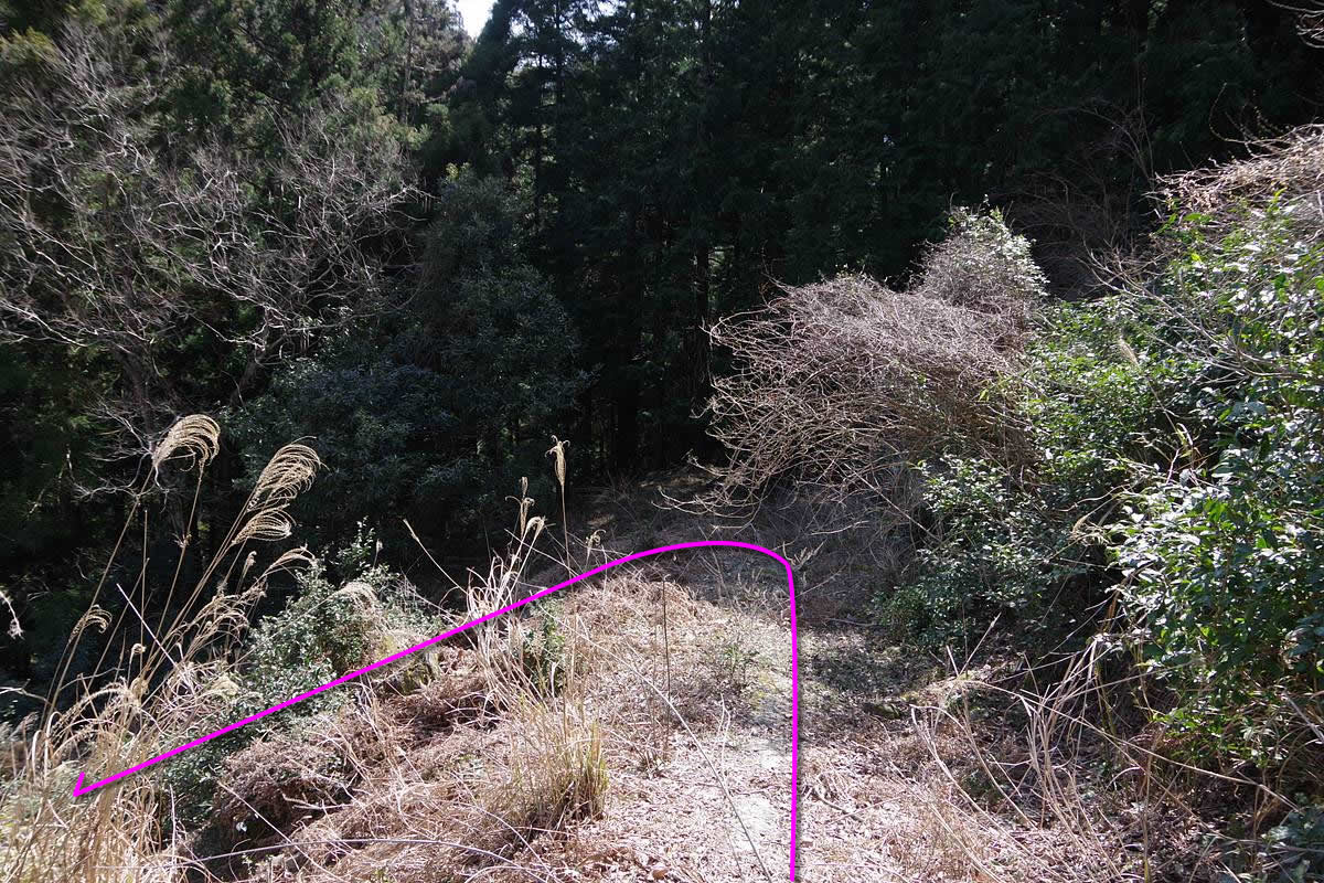 地形図には描かれていない道で、先に何があるのか不明だ。