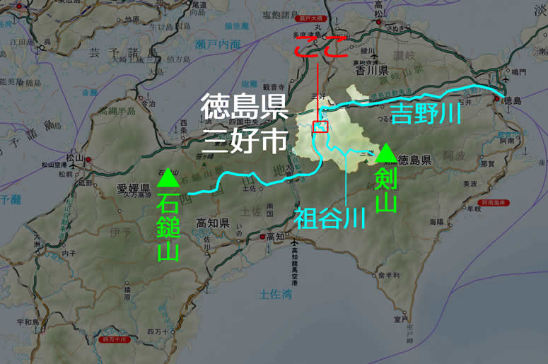 右図は、吉野川と祖谷川の位置関係を示したものだ。