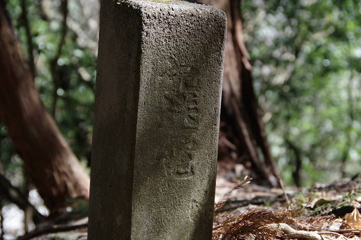 標柱の四面のうち、道側の面には「送電」という文字が刻まれていた。