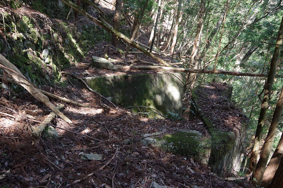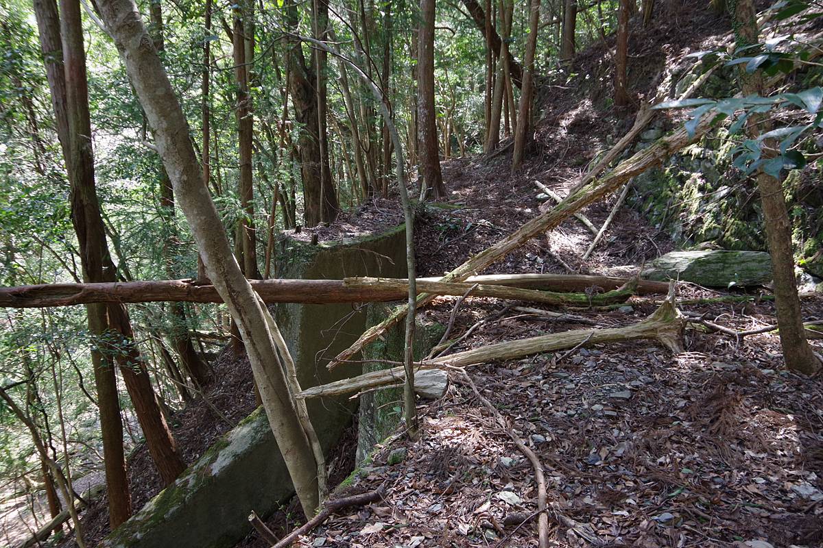 そして、この“謎の構造物”の向こうにも、山側に2段の石垣を従えた路盤が継続しているように見えるが……
