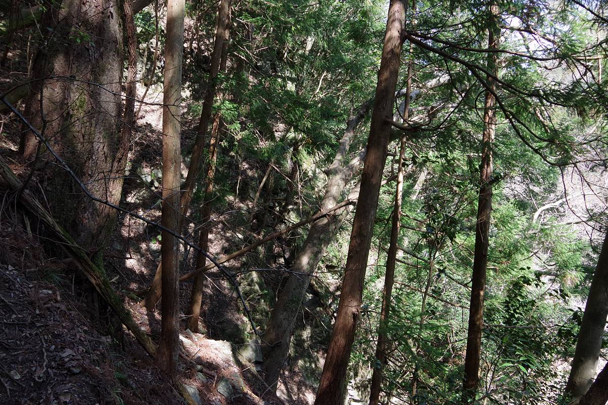 周囲は杉の植林地だが、かなりの急傾斜である。