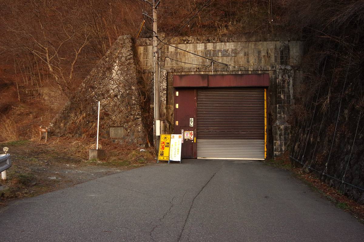 夜叉神隧道の東口は、冬季閉鎖期間中、常にシャッターが降りている。