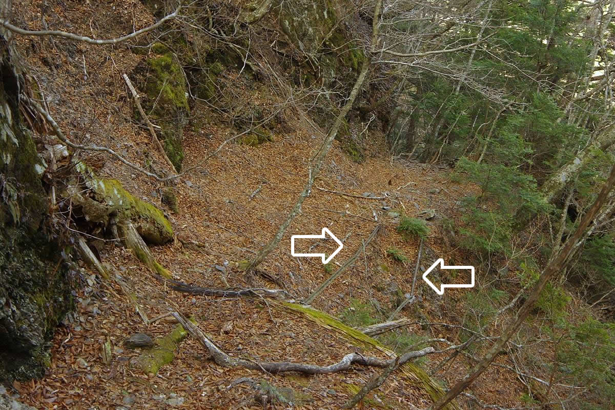 改めて、「★印」の位置も調べてみたのだが、尾根を回り込む道があった感じが全くしない。