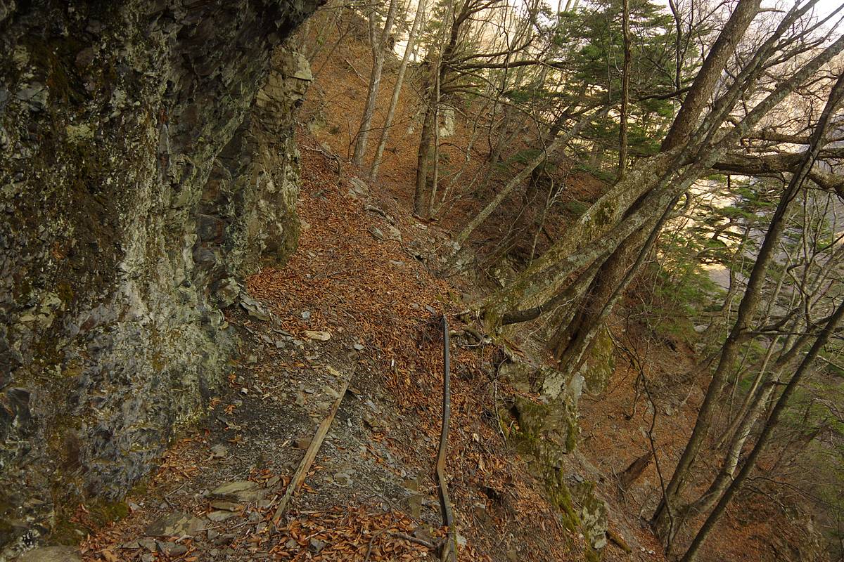 ちょうど先ほどの隧道があったところとよく似た感じの急峻な岩尾根が目前に来ているが、どうも今度は幸せとは縁遠い感じがする。