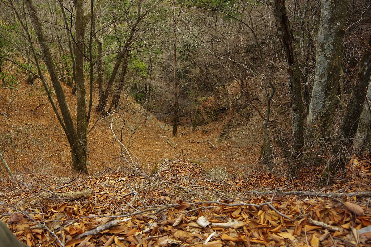 しかしこれでも250mを優に越える比高があり、ほぼ真下に開けて見えるのは、斜面がほとんど崖だからだ。