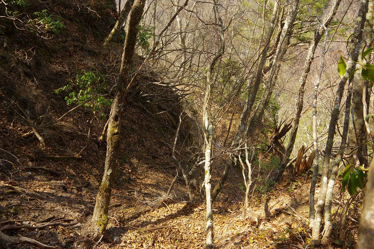 尾根を乗り越え、アザミ沢側の斜面にある路盤へ入った。