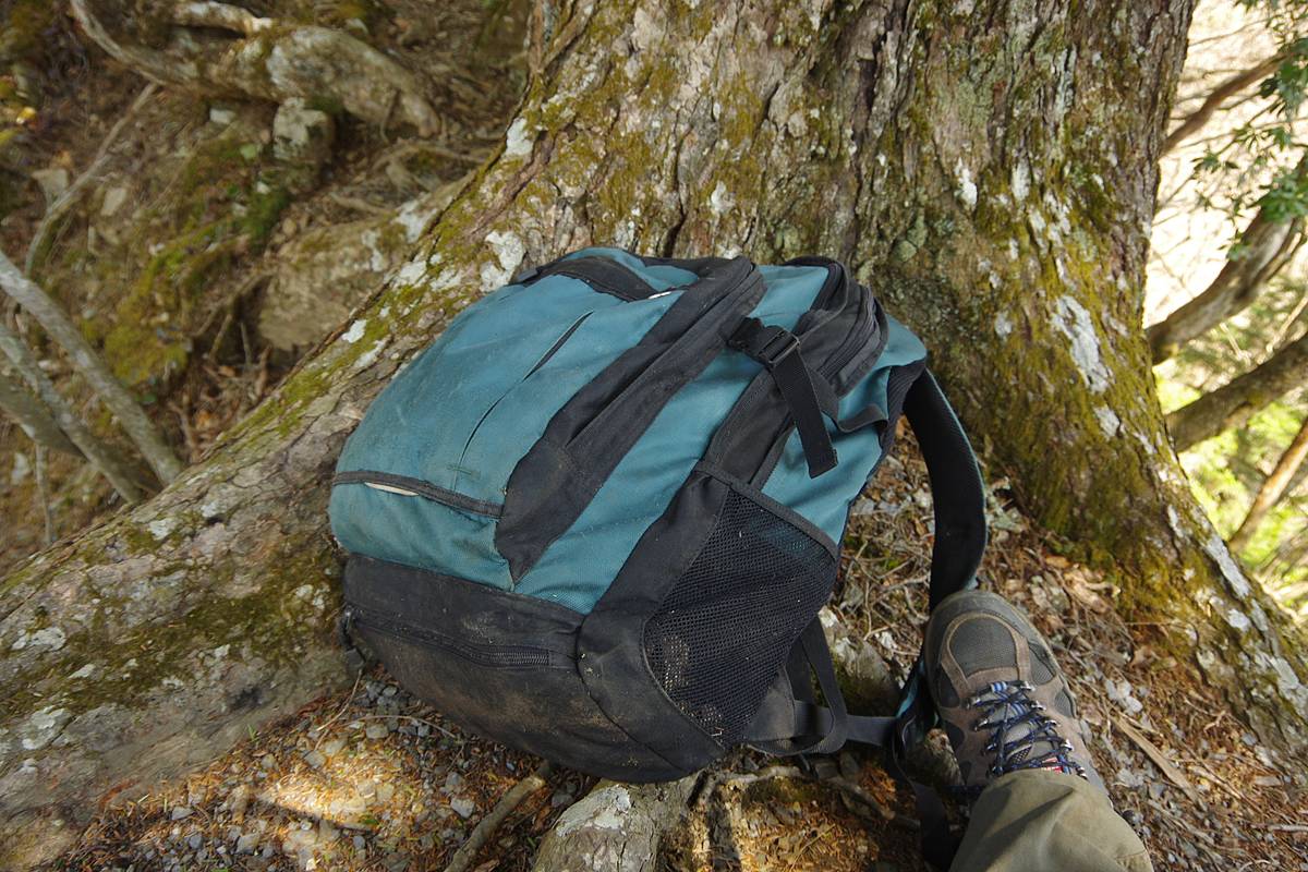 こんな狭い尾根によくぞ育ったと思われる巨大な針葉樹の根に腰をおろし、休息を取った。