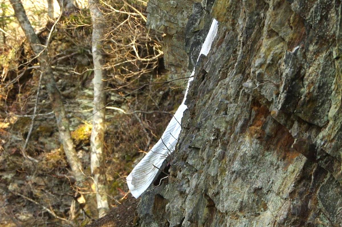 妙に黄色みの強い崩壊地は、砂粒レベルにまで激しく破砕化した岩盤らしく、その下部は底知れぬシュートへと連なっていた。