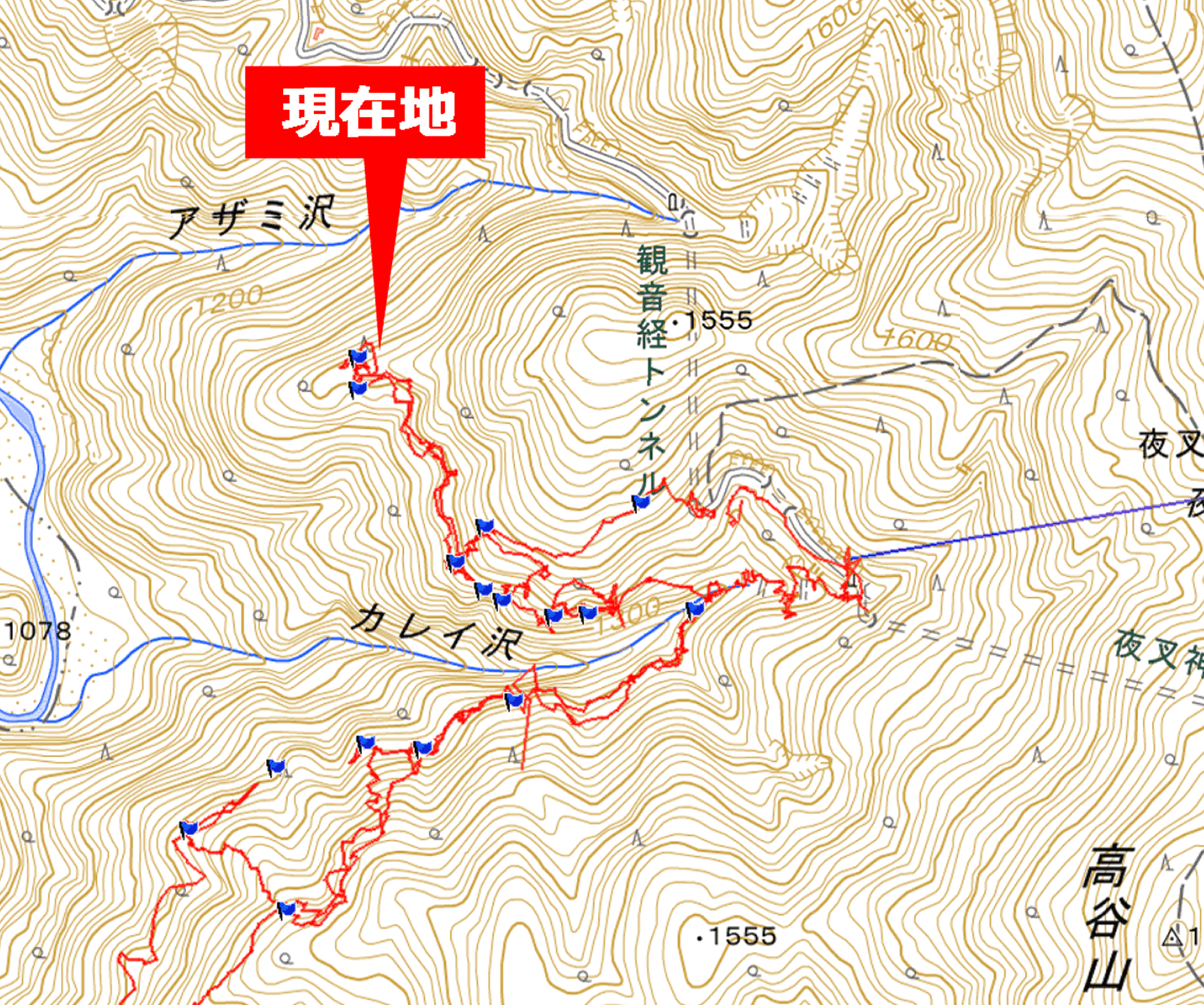 ちなみに、第18回の冒頭で予告した、「私の中ではここまでは行きたいなというイメージ」(心の中の目的地)は、カレイ沢とアザミ沢の分水嶺でした。