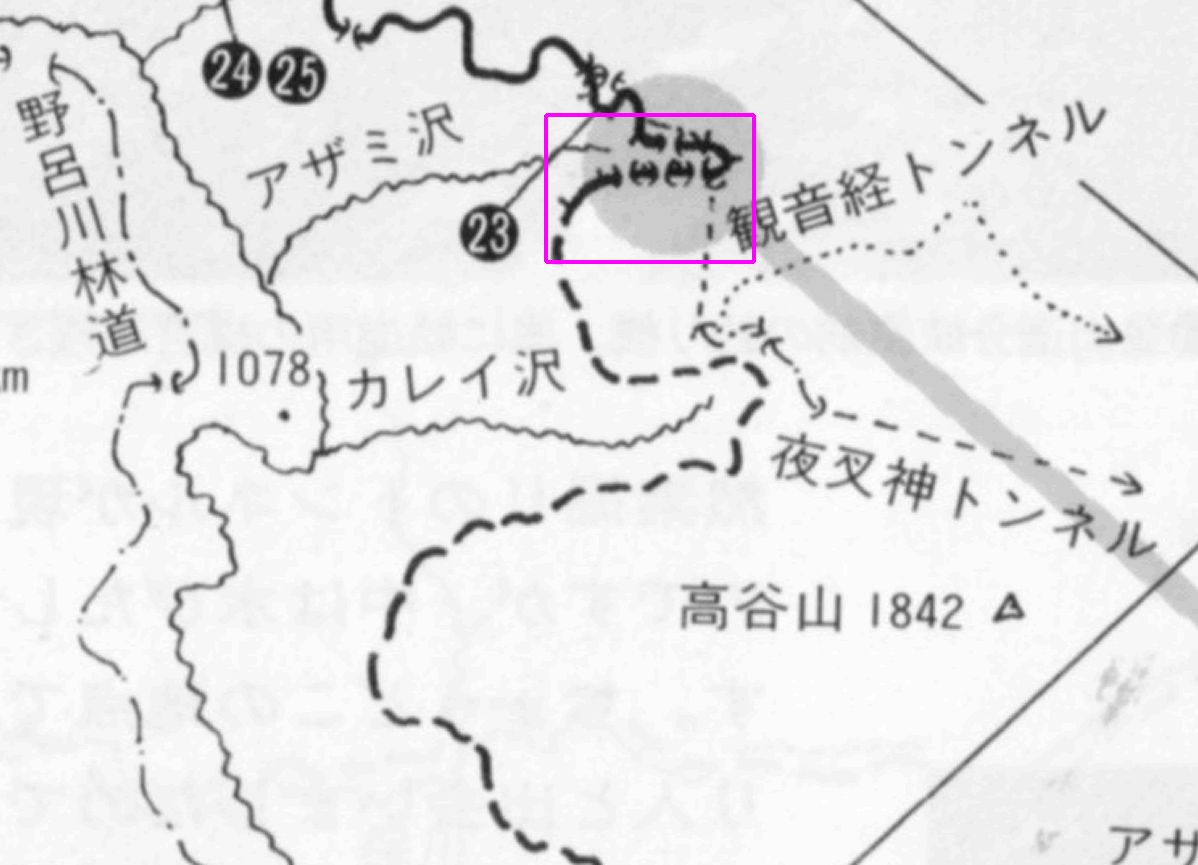 チェンジ後の画像も同書から引用した、私が(予期通りに)踏破を断念した観音経エリア(アザミ沢周辺)の拡大図だ。