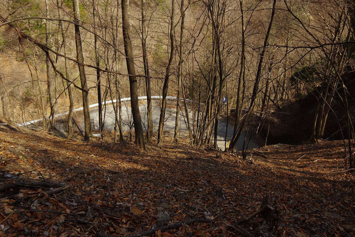 とやがて眼下の斜面の下に舗装路が見えてきた。