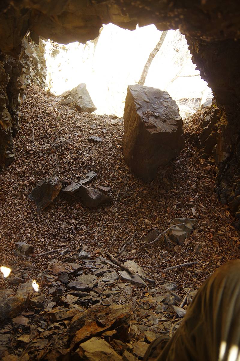 この写真、下半身から入っていって、上半身も洞内に収まったタイミングですぐ撮影したものだが、このように極めて短い隧道である。