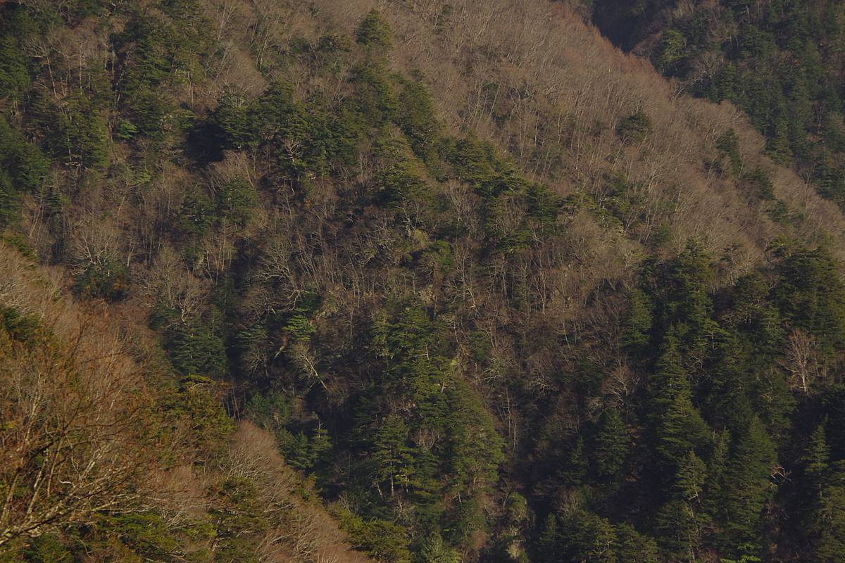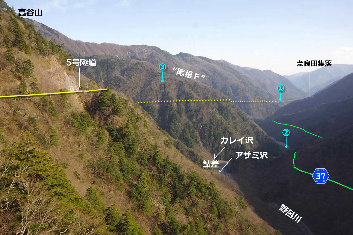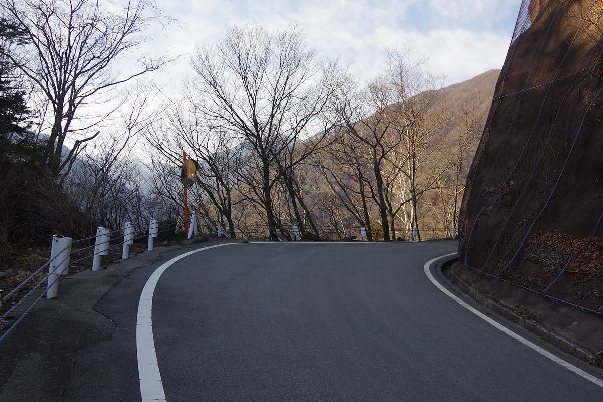 落差400mを下ってから向こう側の3000mの頂上へ登るという、敢えて車道の助けを拒みたい人向きハードコースだが、今回の2日間の探索の進行パターンによっては、県道へショートカットする帰路として歩く可能性があった道だ。結局使わなかった。