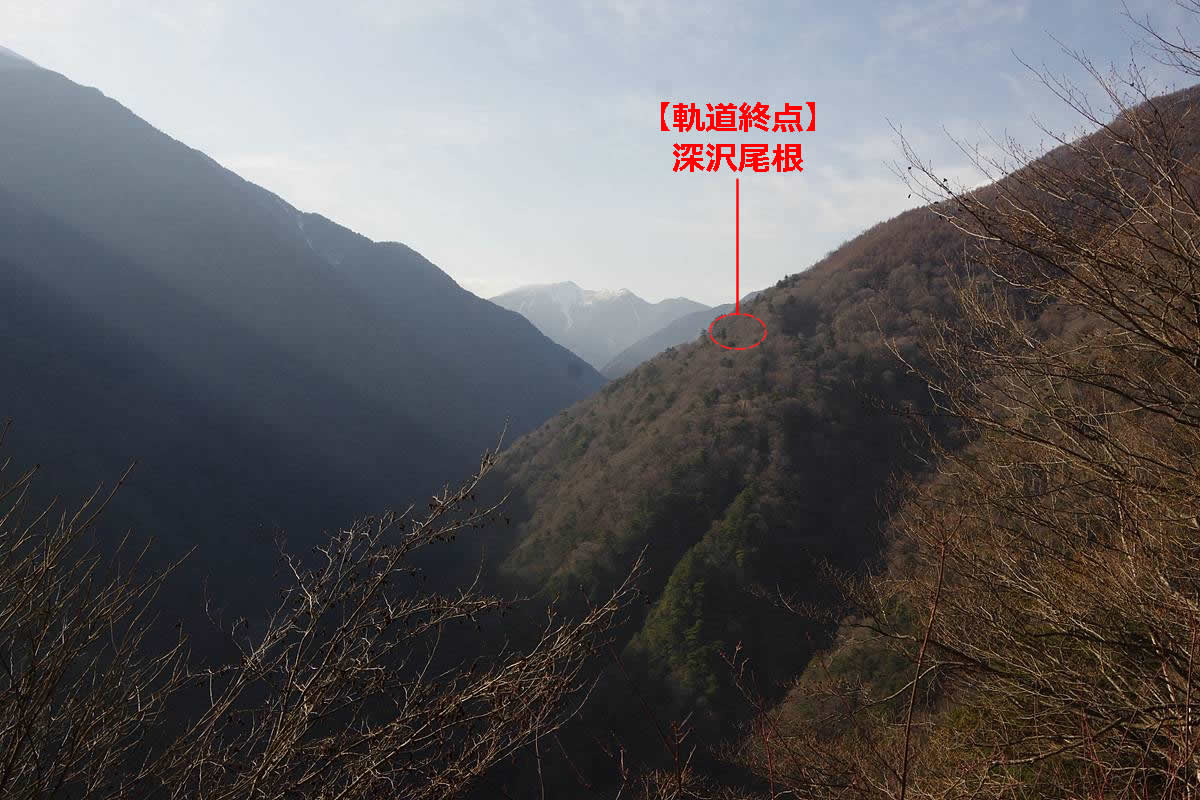 全長54kmと言われることもある極めて長大な(実際に同時に存在していたのは最大39km)早川林鉄の終点として『トワイラ〜』や『早川町誌』に地名が出ている“深沢尾根”は、この深沢を渡った向こう側の尾根である。