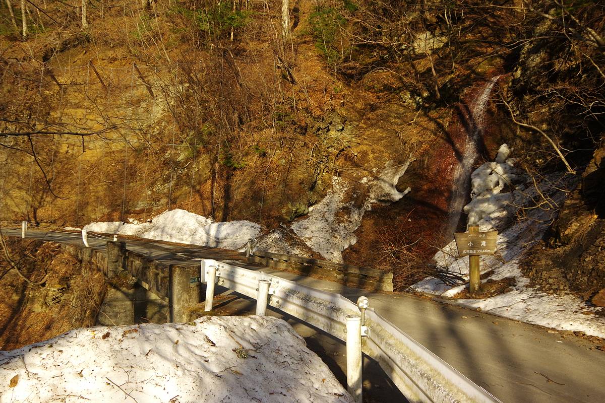 小滝橋が小さな滝のある沢を渡っているが、軌道時代の痕跡は特にみられない。