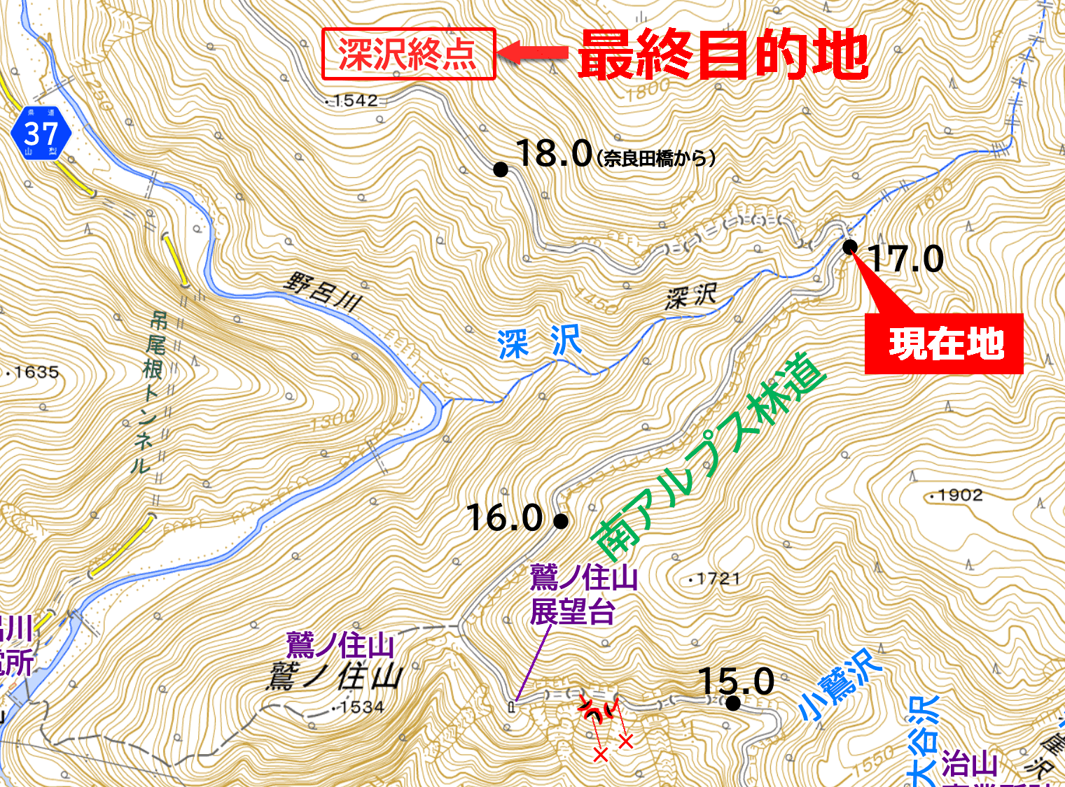 深沢尾根 軌道終点 まで (推定)2.7km