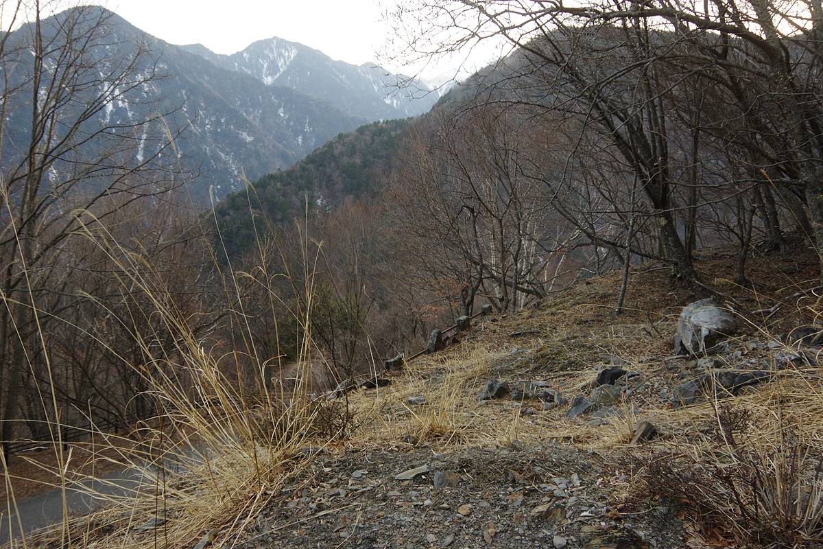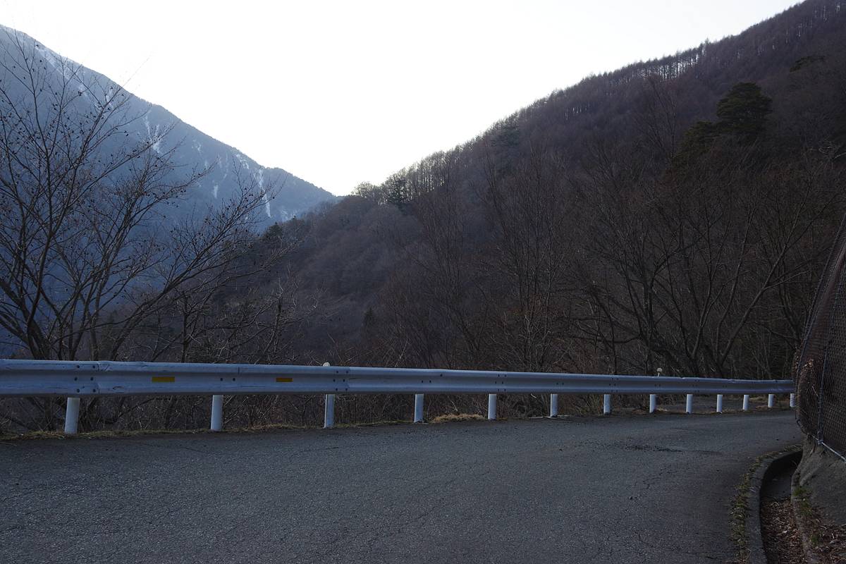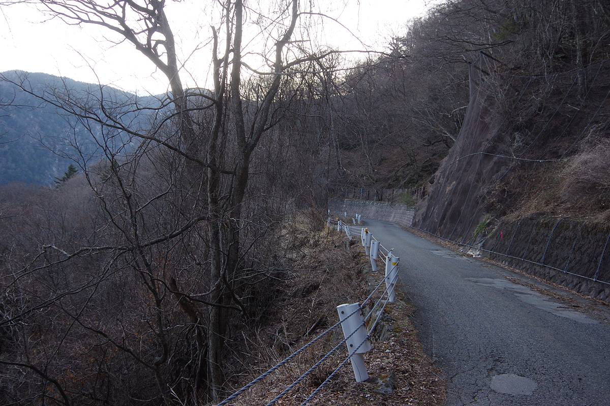 旧野呂川林道はこの辺りが最高標高であり、しばらく進めば広河原へ下り坂になる。そこまでいけば完全に軌道跡ではないと膚で感じることが出来るだろう。なお広河原まではまだ7kmくらいある。