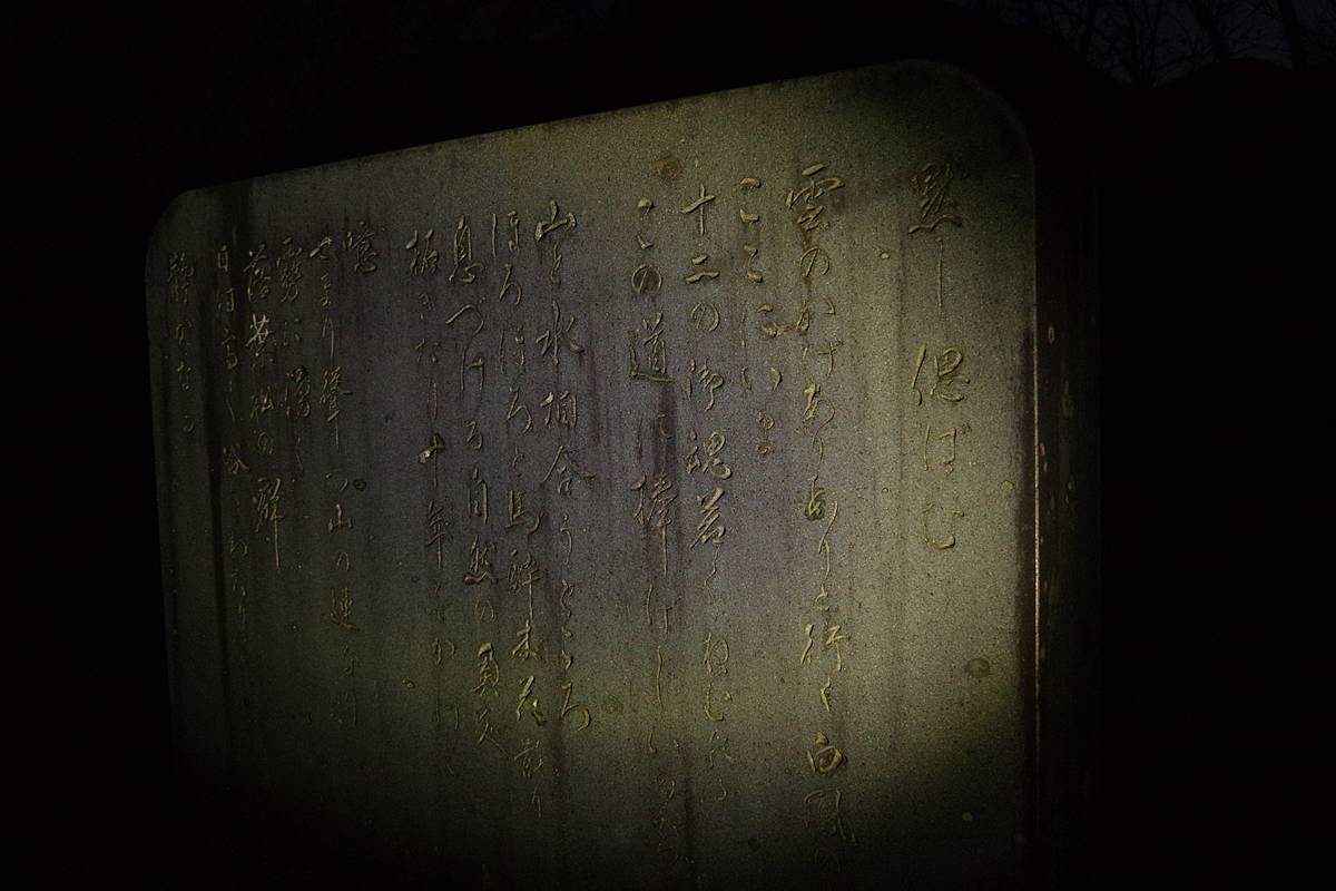 日中は読み取りづらかった碑文が、光の加減ではっきりと読めた。
