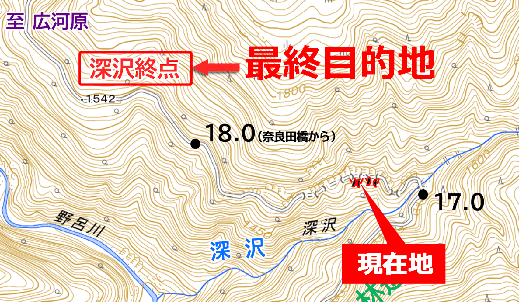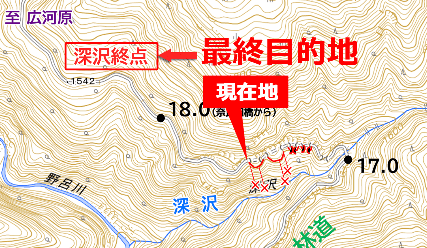 深沢尾根 軌道終点 まで (推定)1.0km