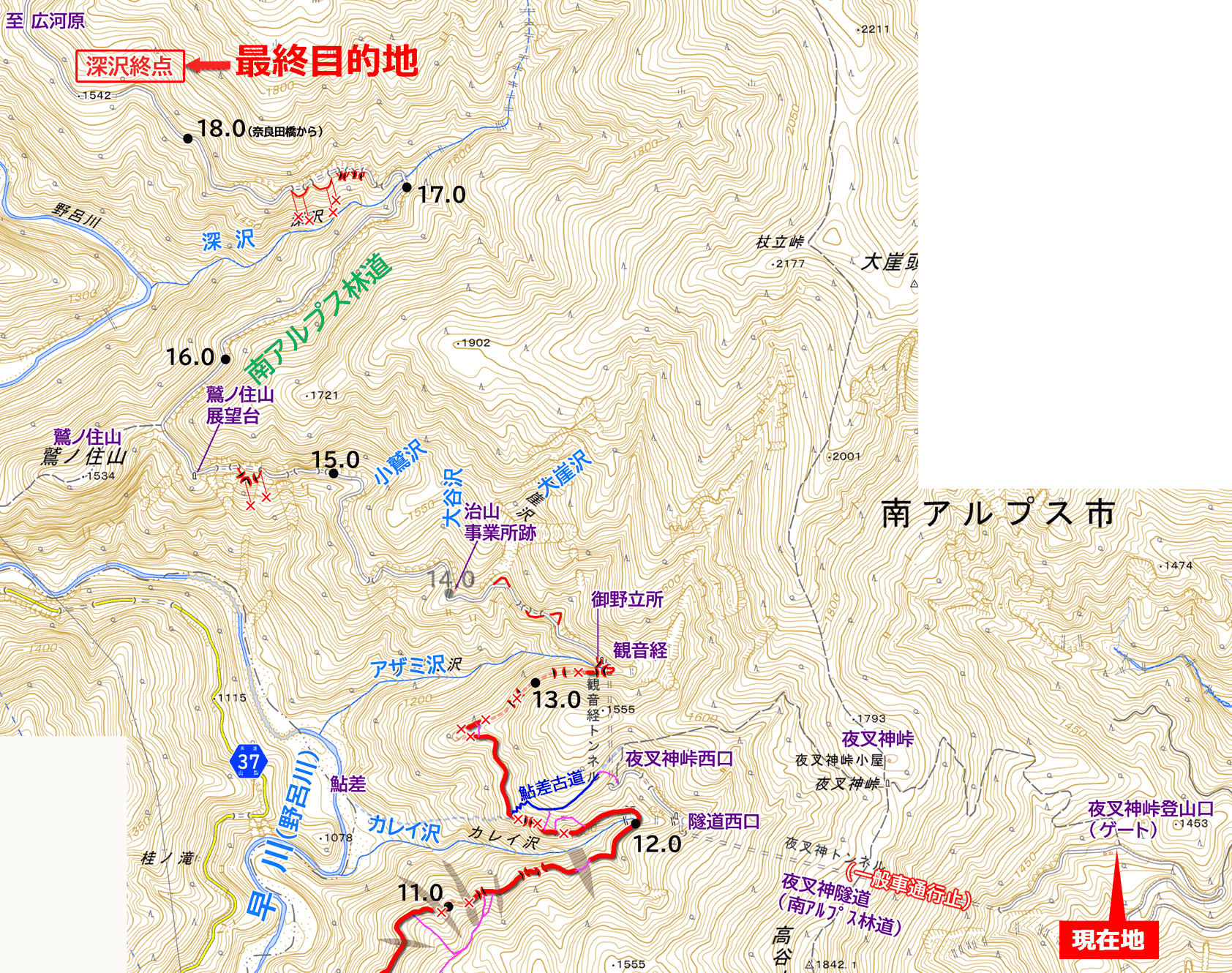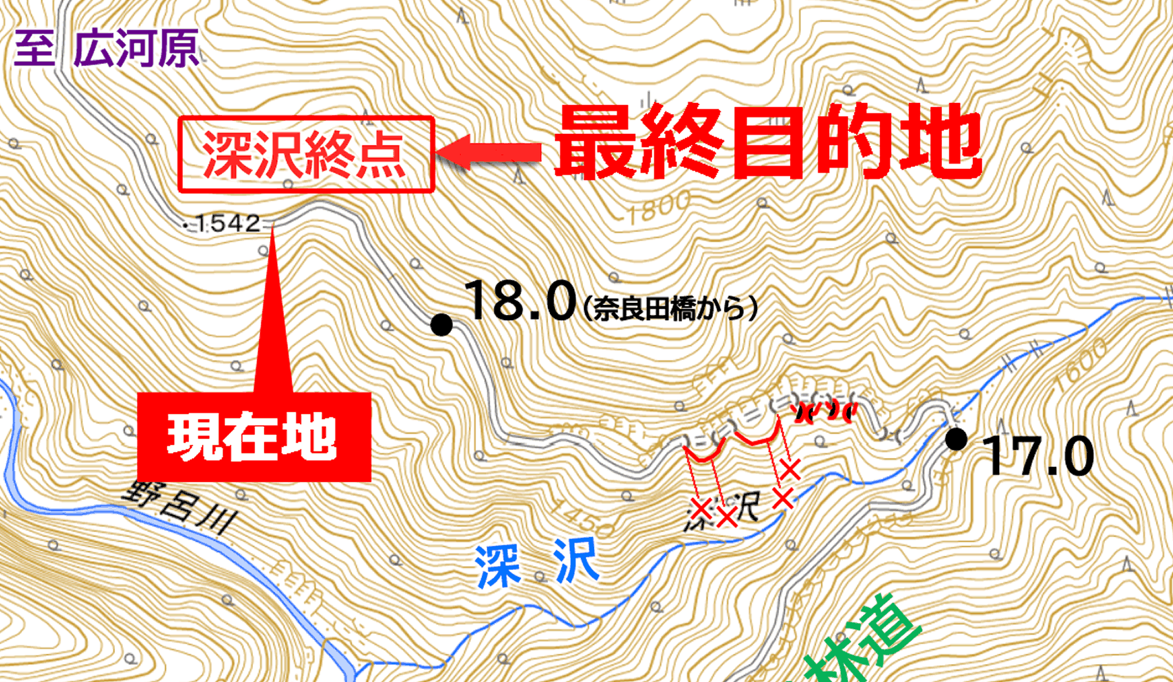 深沢尾根 軌道終点 まで 0km 【到達】