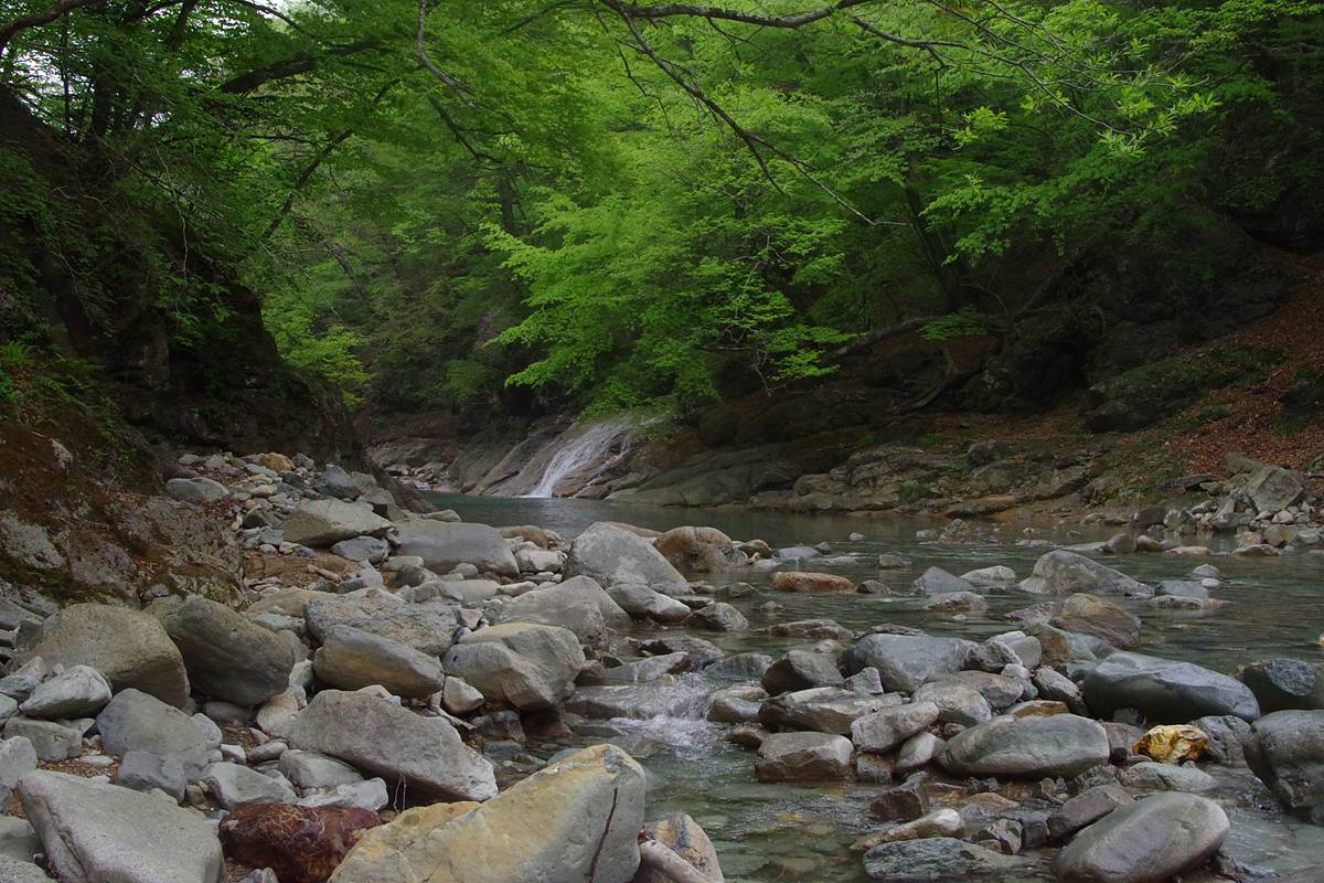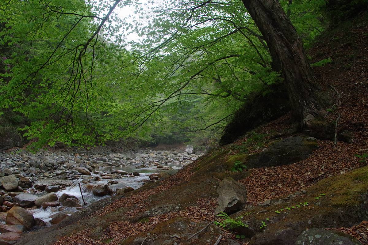両岸ともかなり切り立っているので油断がならないが、少し高巻き気味に進むことで……