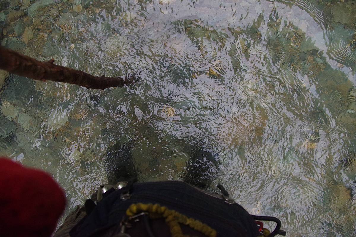 結局、河床から20mくらい登ったところで、それ以上はどうにも危なっかしくて登れなくなってしまった。