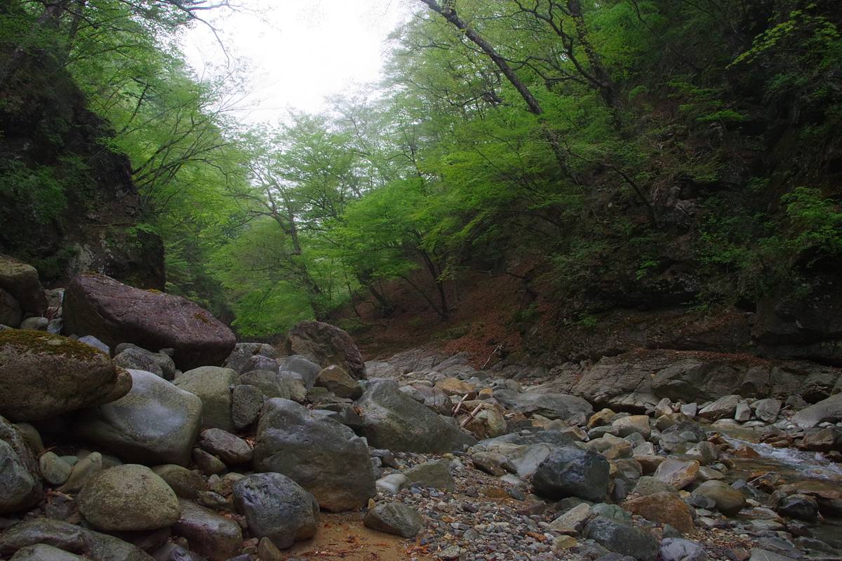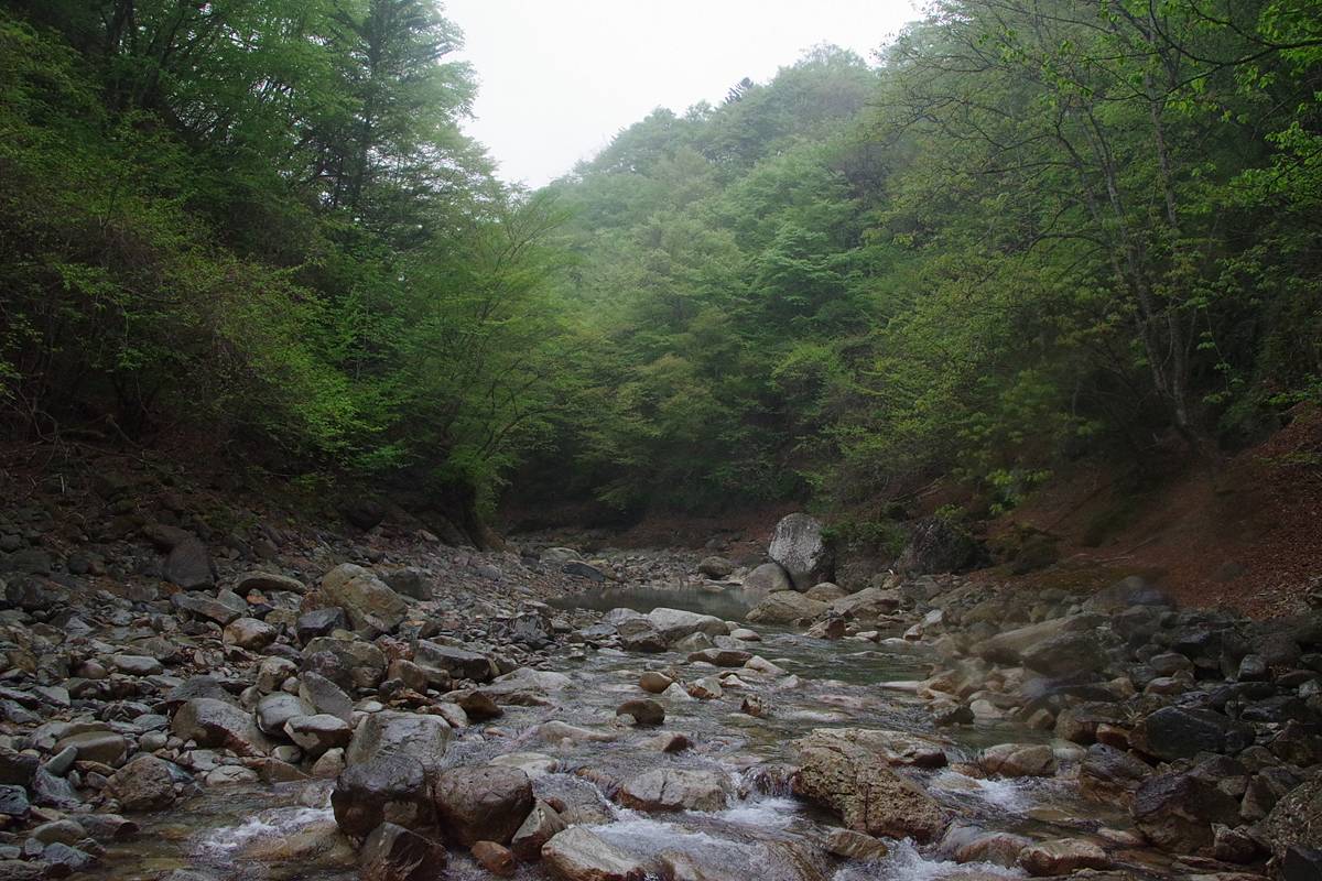 おかげで沢装備ではない私は河床を歩きづらくなった。歩けないわけではないが、滑りやすくてペースが稼げない。