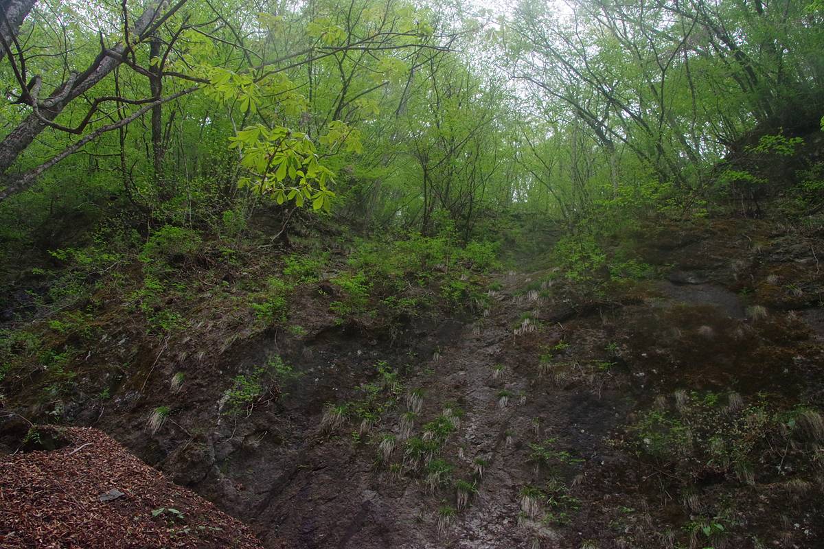 このあとの私には、直前に決死の気分で横断してきた崩壊地を戻るという苦行が課せられるのだ。