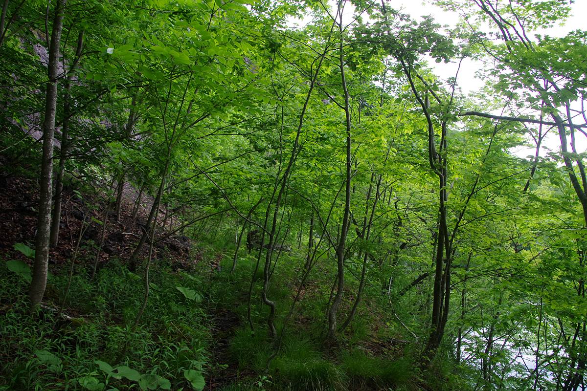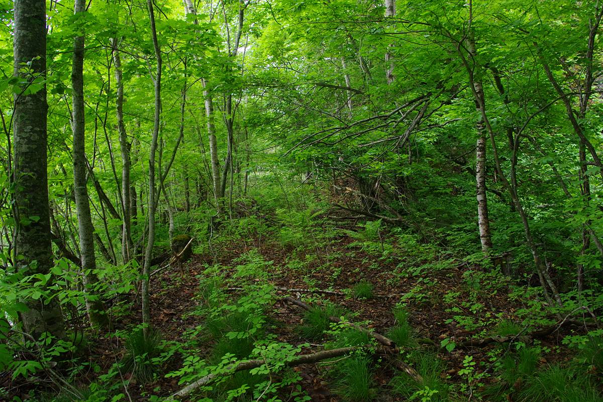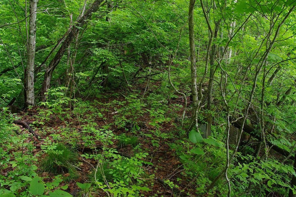 岩がちな地形になったせいか、笹藪は明らかに薄くなってきた。腐葉土の路面が見えるようになった。