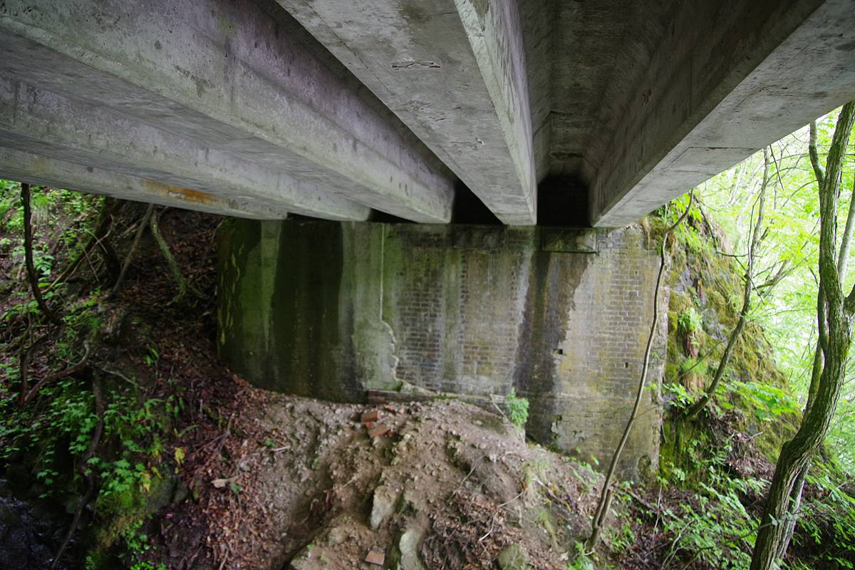 発見に調子に乗った私は、続いて橋の下に潜り込んで対岸の橋台も撮影した。