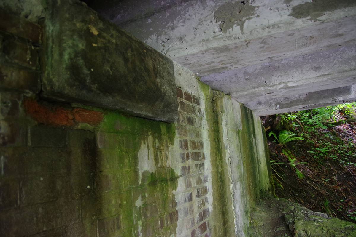 桁は五本梁のRC造りで、幅は目測5m程度だが、それを乗せる両岸の橋台は、幅3.5mの煉瓦部分と、1.5mのコンクリート部分からなっていた。