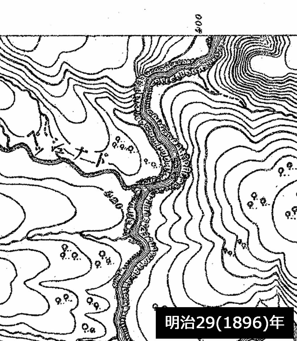 現地付近を描いた5枚の5万分の@地形図を比較する。珍しく古い方から順に見ていく。