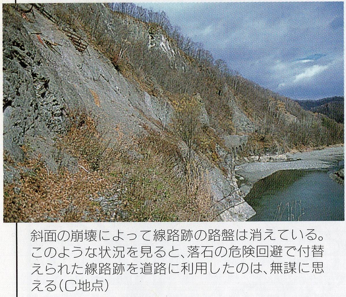 そもそも、落石が原因で線路でなくなったところを道路として転用したのは無謀ではなかったかという『鉄道廃線跡を歩く』の疑問は、全くその通りだと思う。なるべくしてなった付け替えだった気がする。