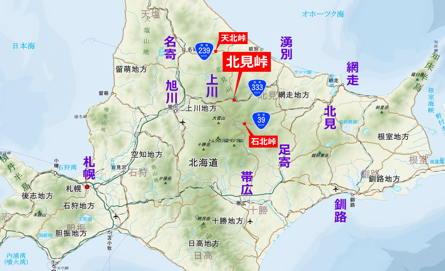 その後については文献的資料はあまりないが、昭和56(1981)年に北見峠は新たに指定された一般国道333号として国道への復帰を果たしたほか、昭和62(1987)年に閣議決定された全国の高規格幹線道路網1万4000kmの中に、北見峠を貫く高規格幹線道路の計画が盛り込まれたことを受けて、平成5年に国道450号として指定された旭川紋別自動車道の建設が進み、その一部である上越白滝道路が平成20(2008)年に開通。これにより北見峠は北大雪トンネルによってショートカットされることになった。