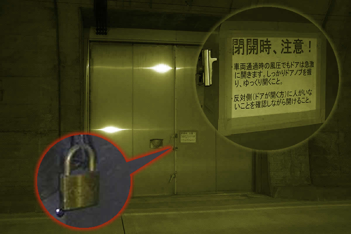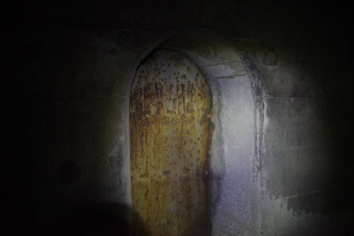 そのカーブ終わりあたりの海側の側壁に、完全に密閉された鉄扉があった。