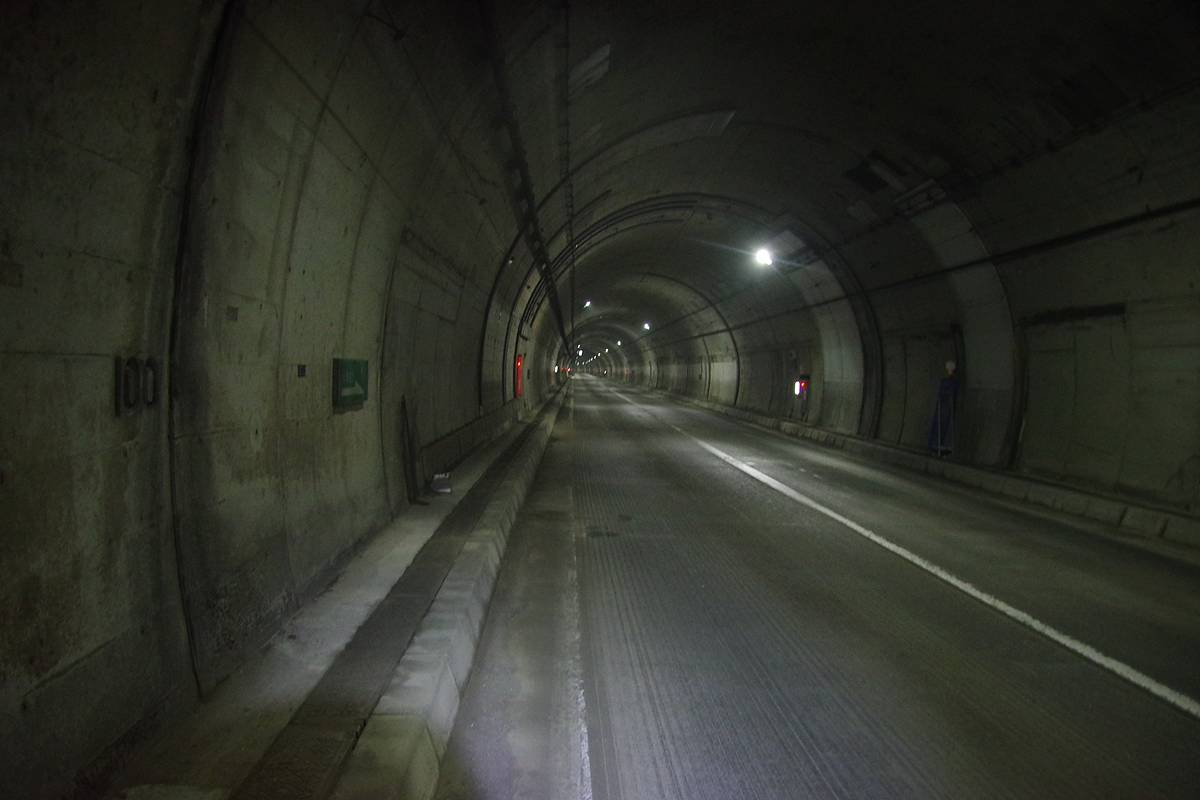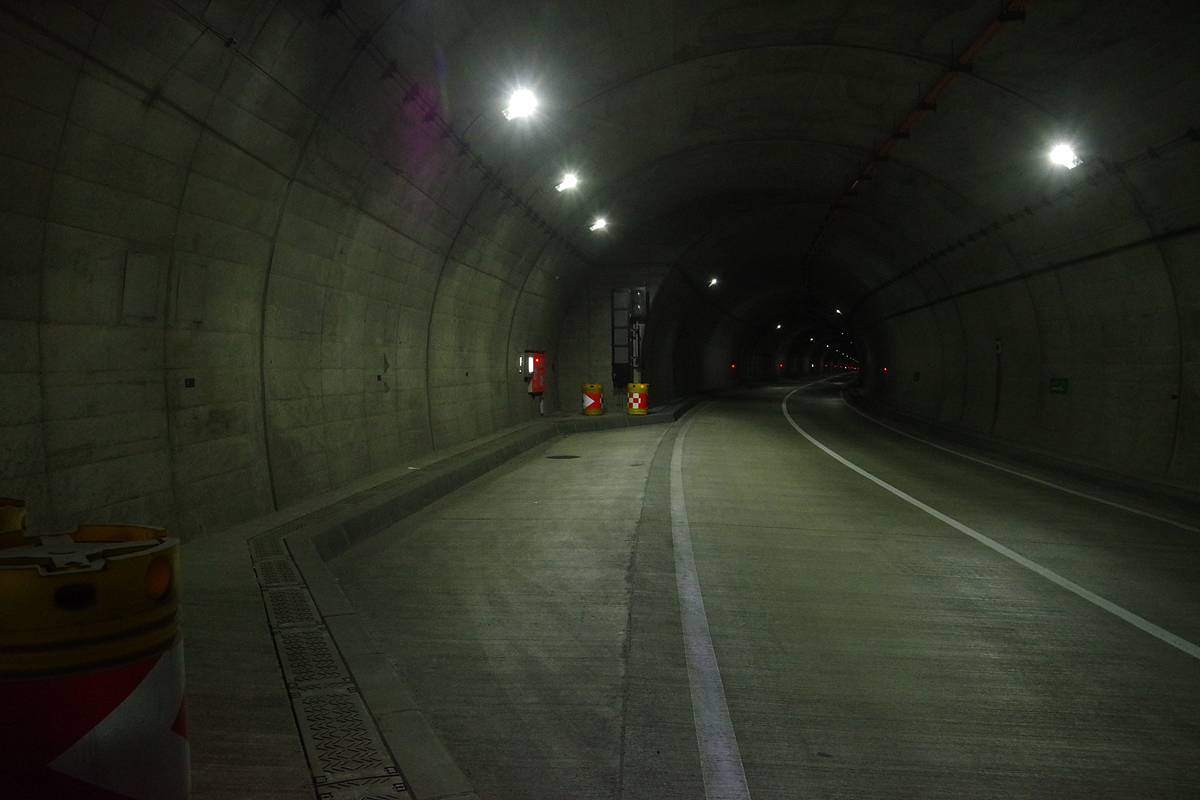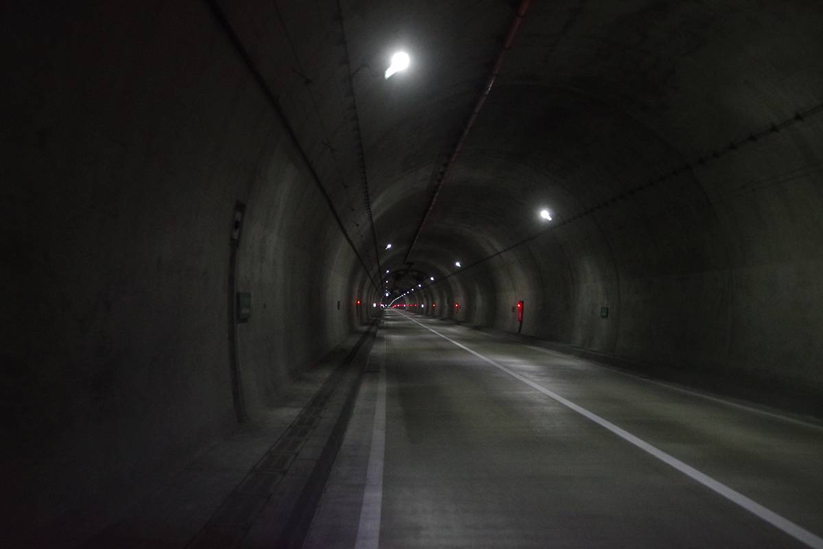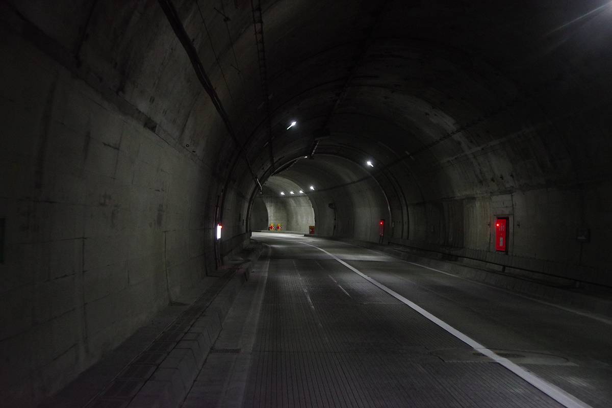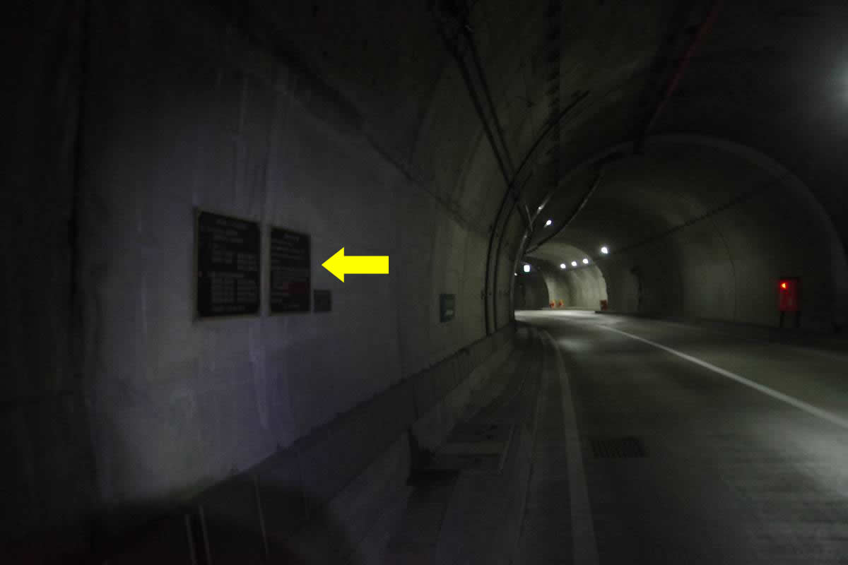 銘板によれば、本トンネルの建設年は「2012年10月着工〜2016年3月竣功」で、幅8.5m、高さ4.7m、そして全長1513mとなっていた。
