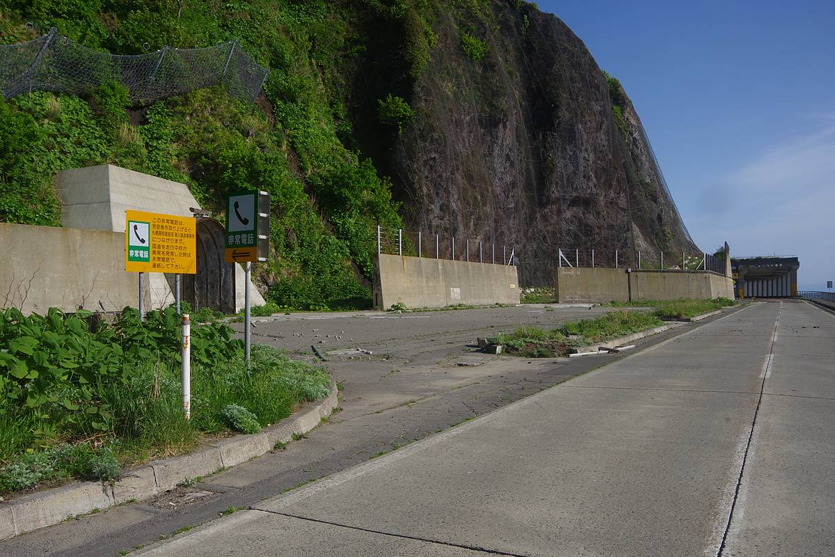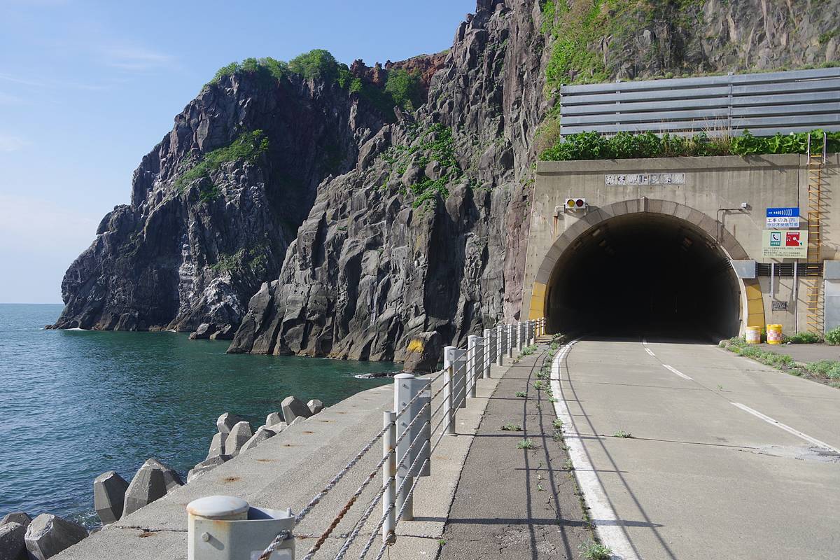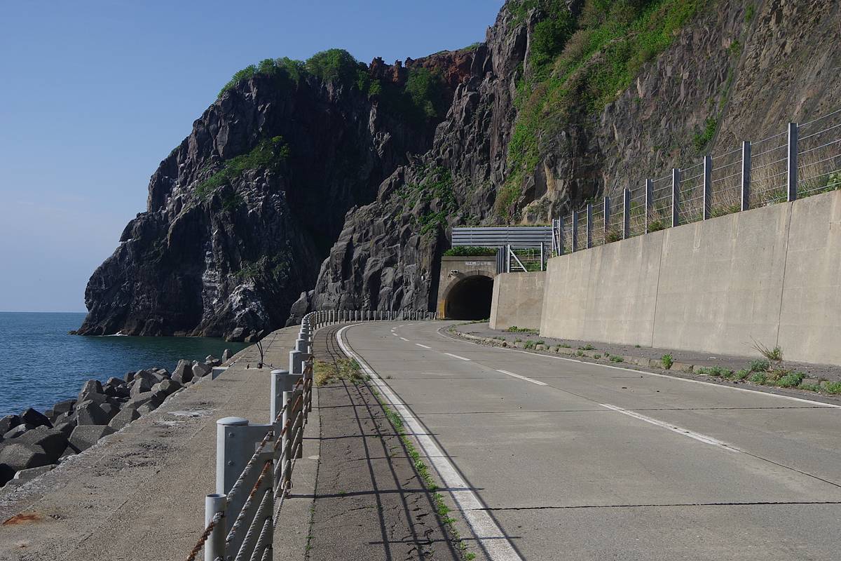 正直、この場所はあまり“岬感”がなく、すぐ隣にあるタンパケトンネルが潜る岬や、この先の(その名も)雄冬岬トンネルが潜っている岬の方がよほどそれっぽい地形だが、地形図を根拠とするなら、雄冬岬はここである。