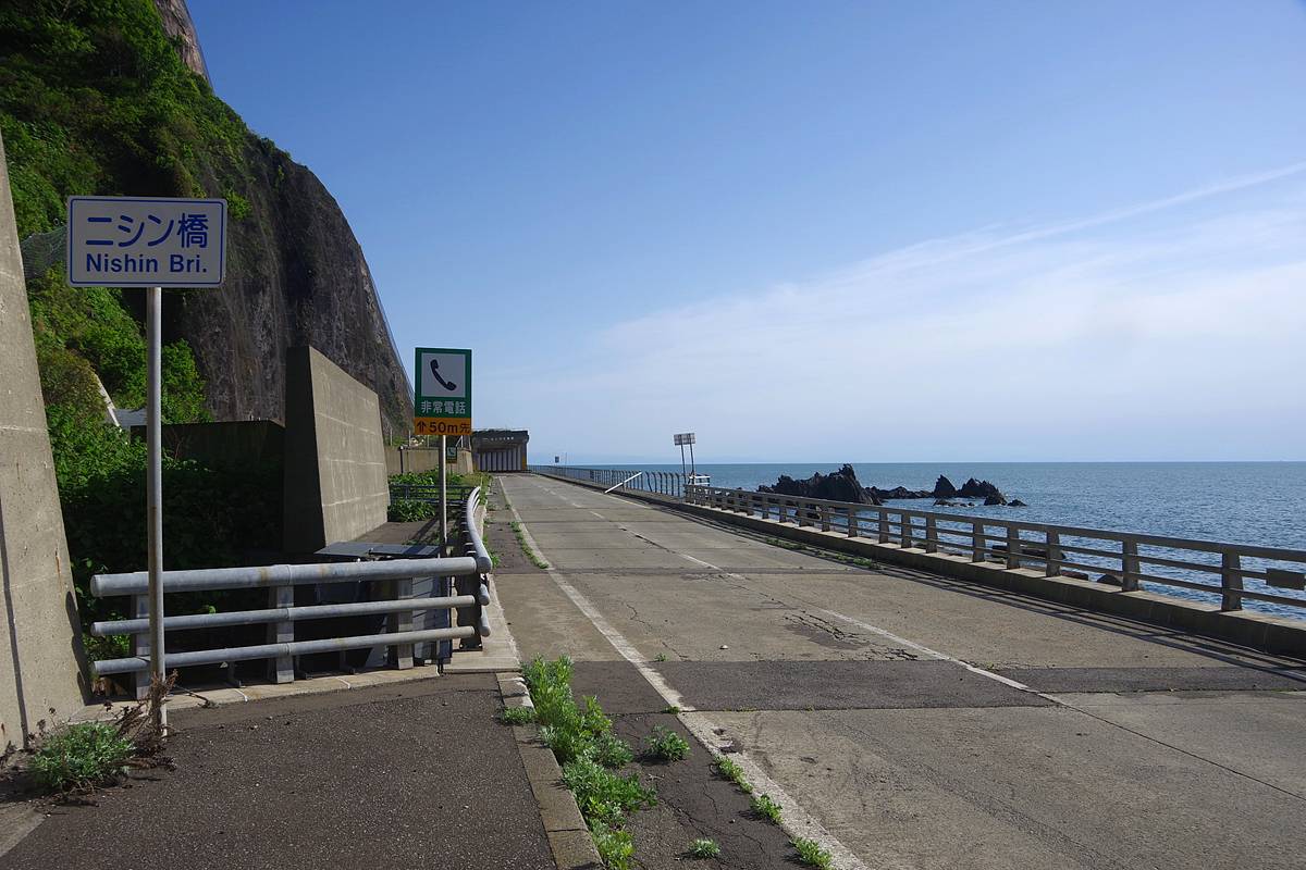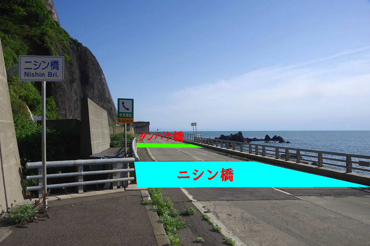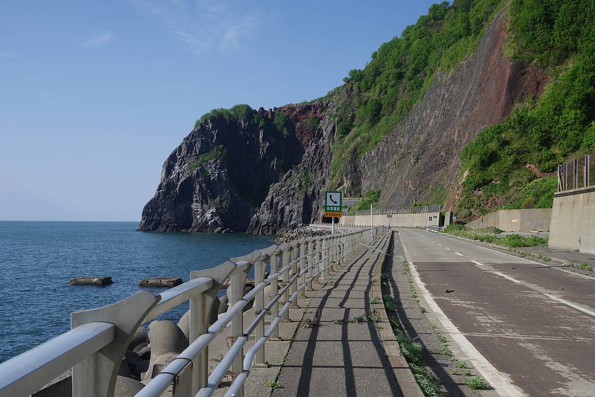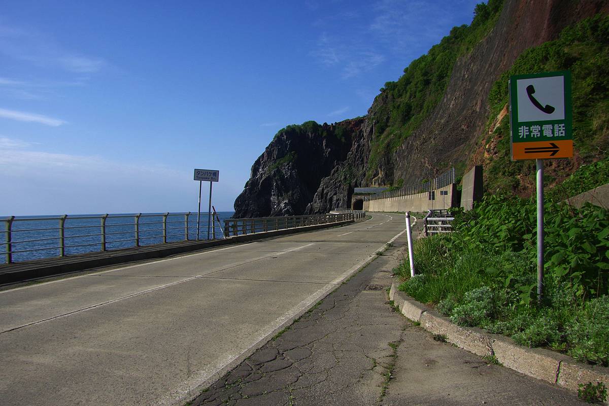 正直、この場所はあまり“岬感”がなく、すぐ隣にあるタンパケトンネルが潜る岬や、この先の(その名も)雄冬岬トンネルが潜っている岬の方がよほどそれっぽい地形だが、地形図を根拠とするなら、雄冬岬はここである。