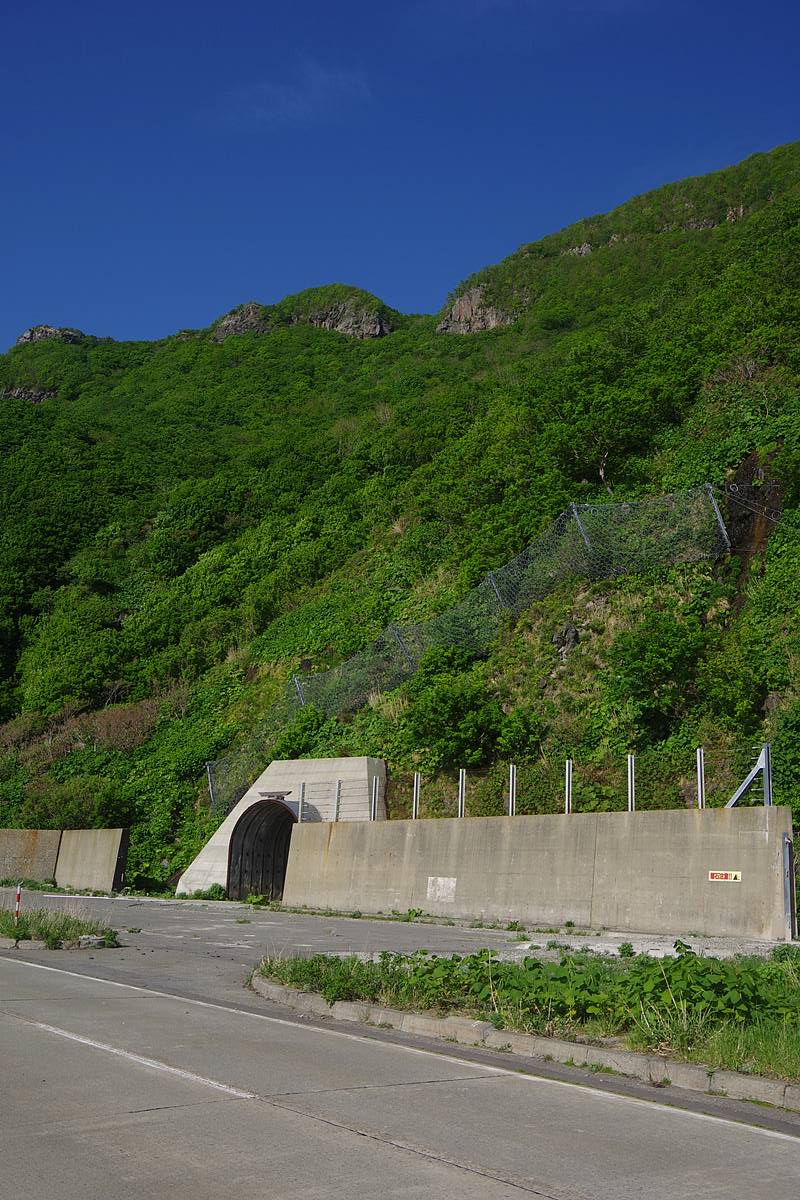 ここはかつての雄冬岬パーキング跡であり、その背後の山には小さなトンネルが口を開けている!