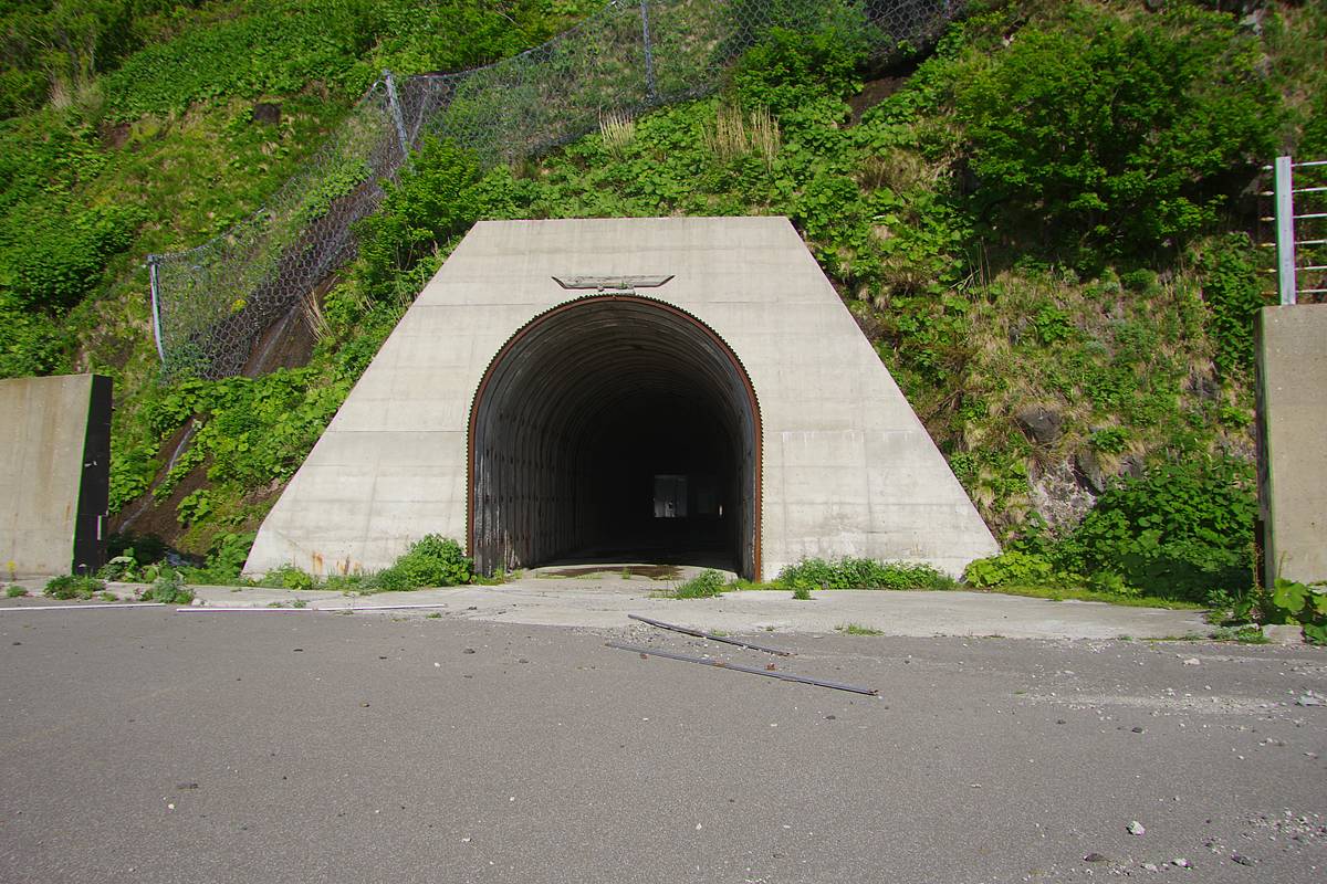扁額や、銘板などはないけれど、化粧木あるし、こここそが、地上には存在しないはずの「新雄冬岬トンネル」の坑口って感じだなぁ。